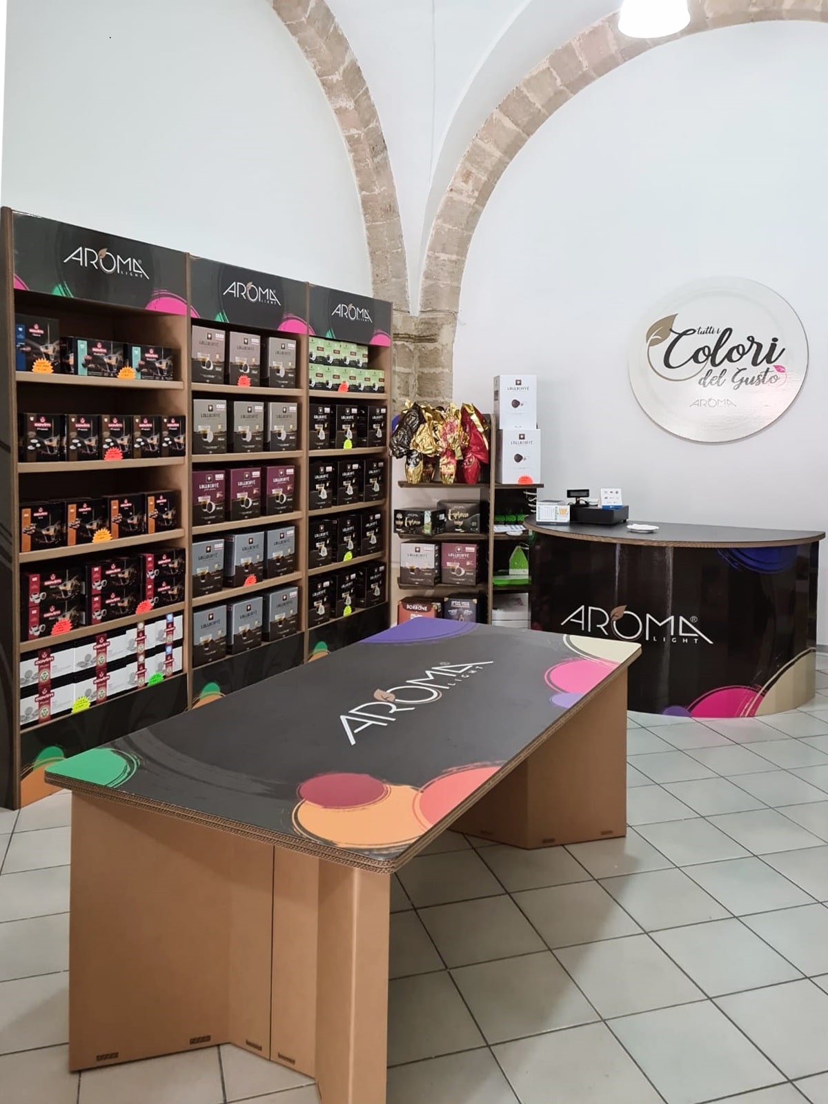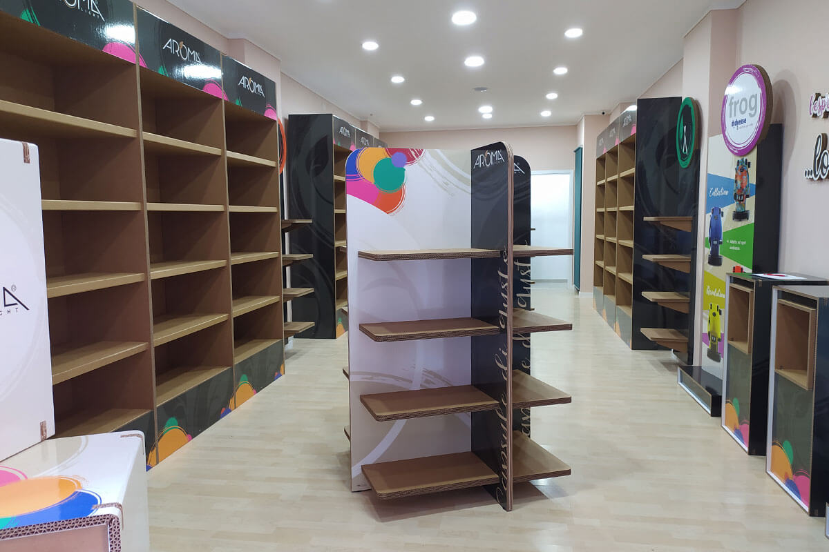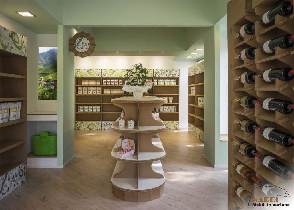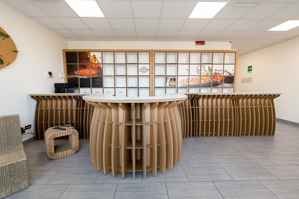 Negozi arredati interamente con prodotti in cartone, espositori in cartone, sedie in cartone, scrivanie e banconi in cartone, tutto è costituito da questo materiale ecologico. I prodotti di cartone si prestano ad essere stampati e brandizzati a seconda delle esigenze del cliente, legando l’immagine di un negozio diverso, che guarda al futuro, al brand della vostra azienda.