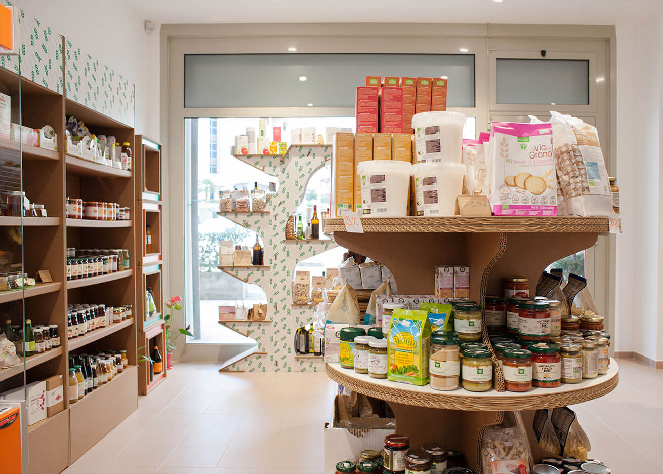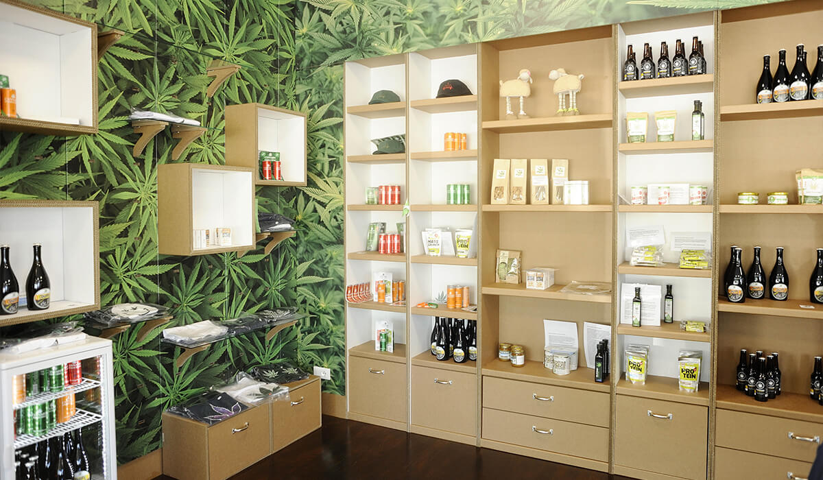 Esempi d'arredo negozi e allestimenti sostenibili e mobili in cartone