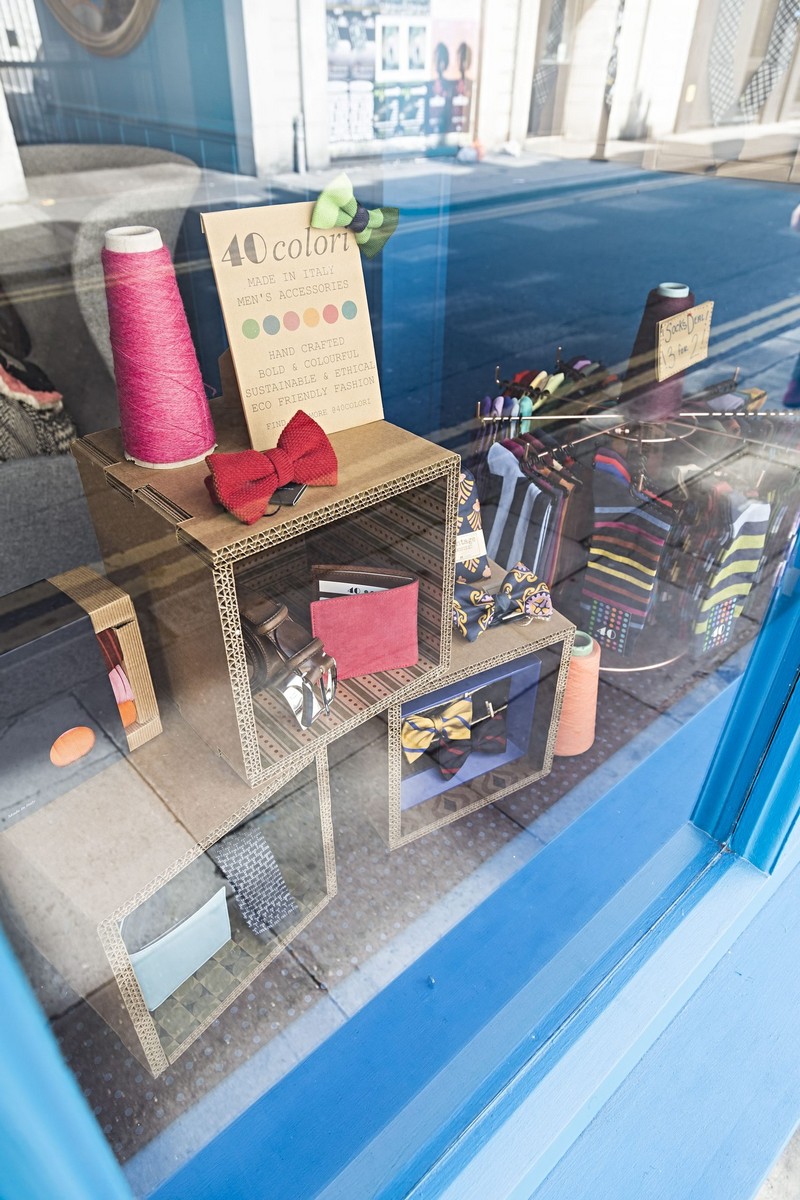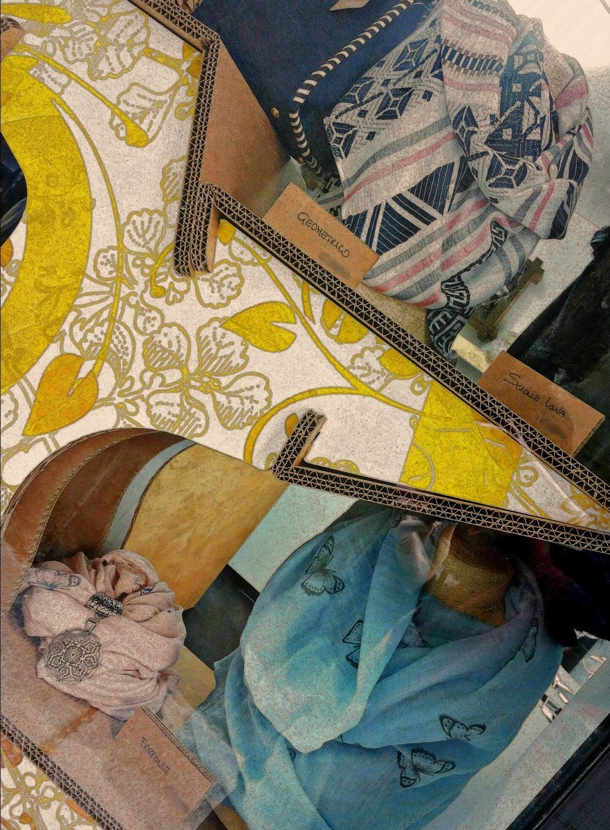 La vetrina diventa così un mezzo di comunicazione visiva che, attraverso gli oggetti di ecodesign in cartone, narra la storia della sostenibilità del brand. Questi piccoli dettagli non solo attirano l'attenzione dei passanti ma creano anche un legame emotivo, invitando i clienti a essere parte di un movimento per un consumo più consapevole ed ecologico.
