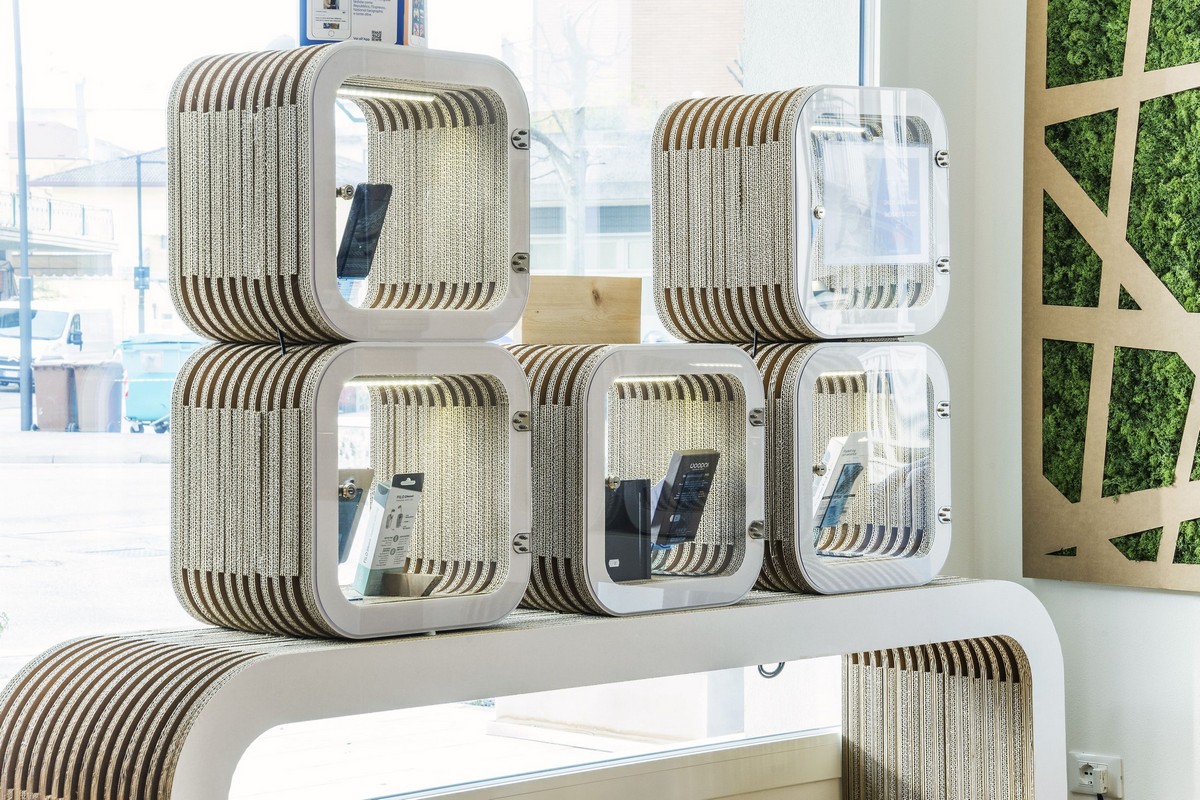 Le caratteristiche fisiche ed estetiche del cartone lo rendono un materiale flessibile ed ecologico, infallibile per creare oggetti di ecodesign personalizzati con forme originali e colori che rispecchiano l'identità del brand. Lo stile e la versatilità d’uso di questi oggetti amplificano il valore sostenibile perché riutilizzabili anche per creare allestimenti all’interno del negozio stesso.