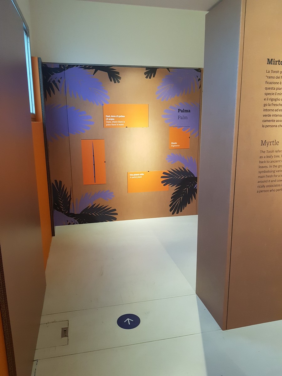 Il percorso si conclude in una struttura dall’aspetto imponente, realizzata con doghe di cartone montate come una capanna vera e propria. Le pareti erano rivestite con opere d’arte di artisti contemporanei, creando un finale suggestivo e celebrativo della cultura ebraica e della tradizione di Sukkoth.