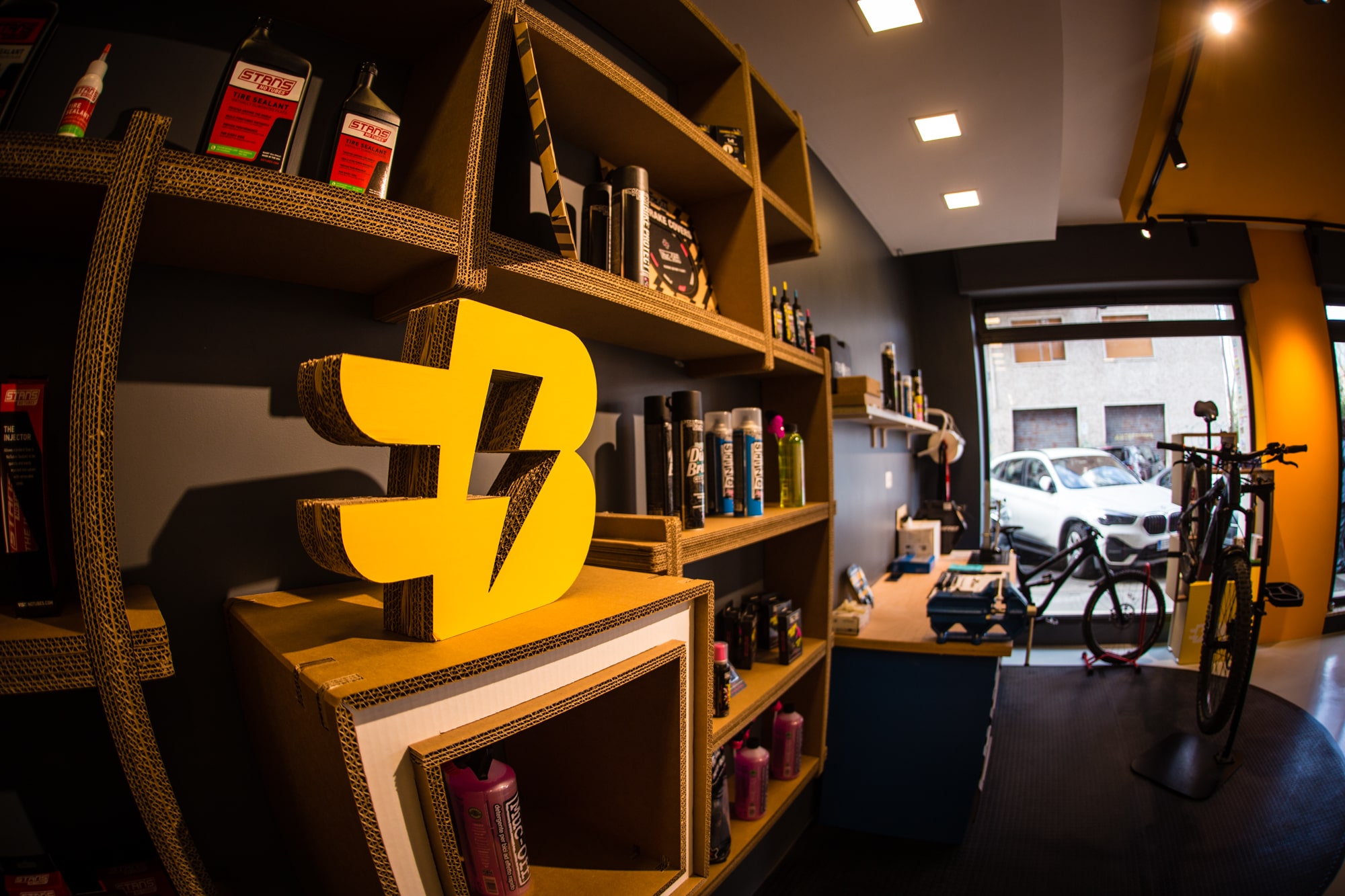 Allestimento retail ecologico per un negozio dedicato alle bici