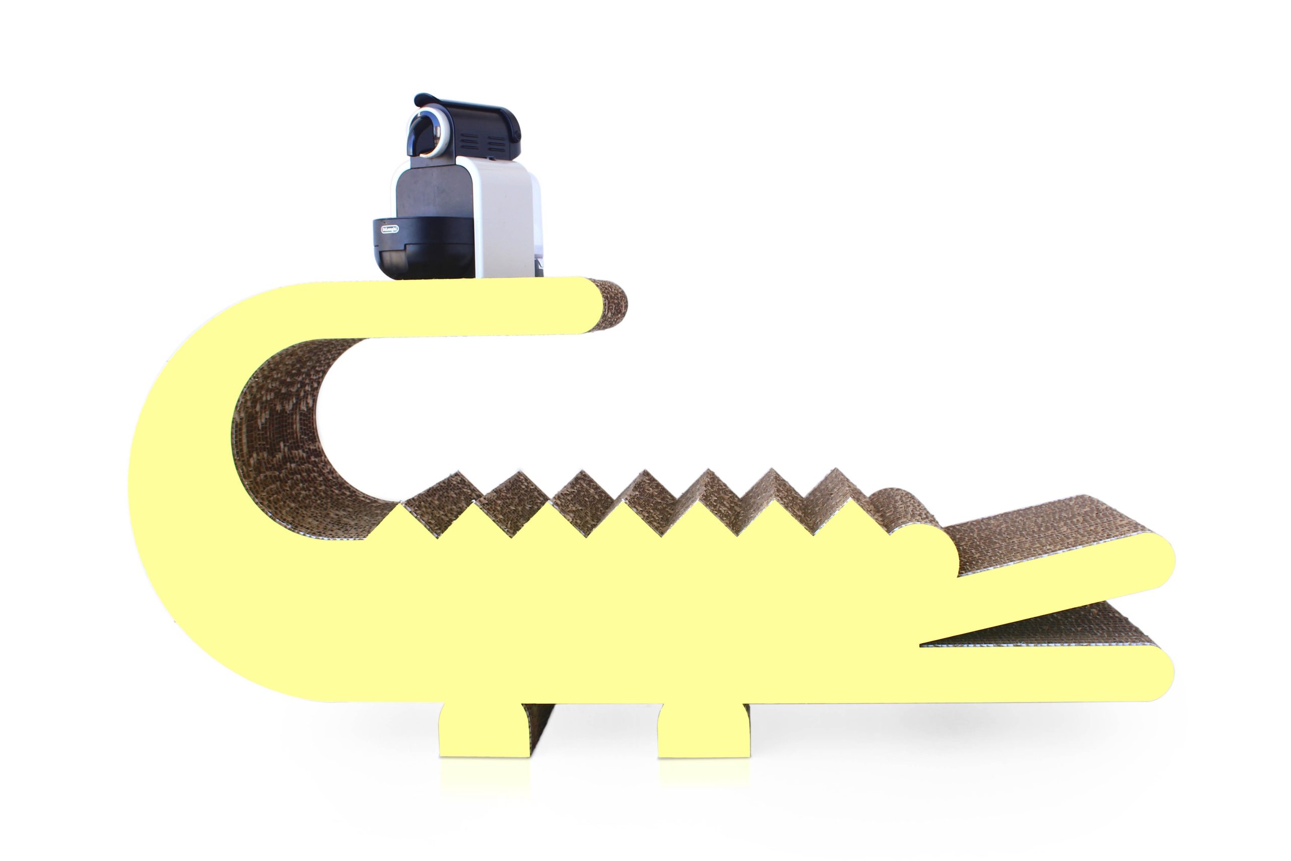 Natur Design ha progettato e realizzato degli espositori multifunzionali che avessero la forma di animali, ed abbiamo optato per un elefante e un coccodrillo. Sono tra gli animali più amati dei bambini e li abbiamo modellati intagliando le sagome su pannelli di cartone naturale a tripla onda e poi accoppiati tra lor seguendo il senso verticale del cartone. In questo modo non abbiamo solo dato solidità a tutta la struttura ma lasciando gli alveoli del cartone a vista con un effetto decorativo e naturale di sicuro impatto visivo.