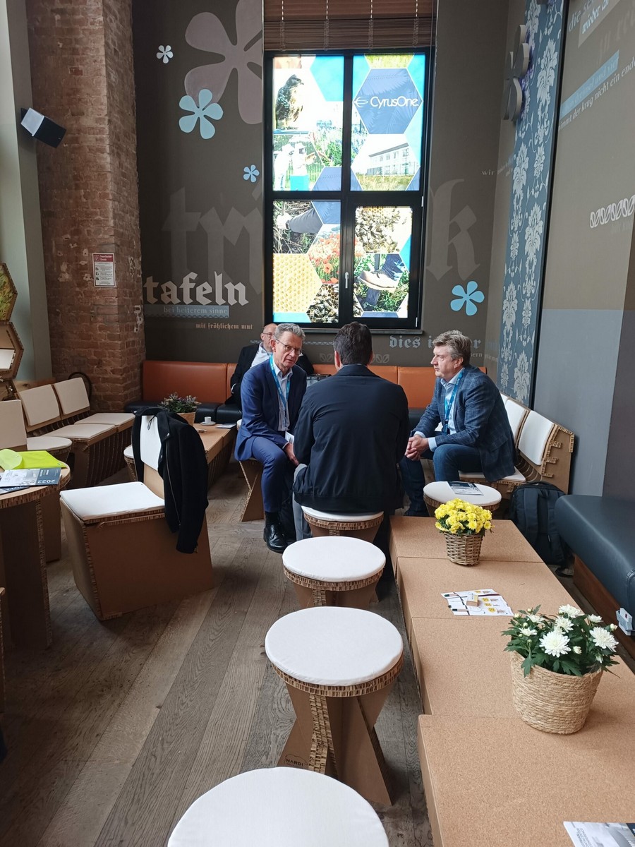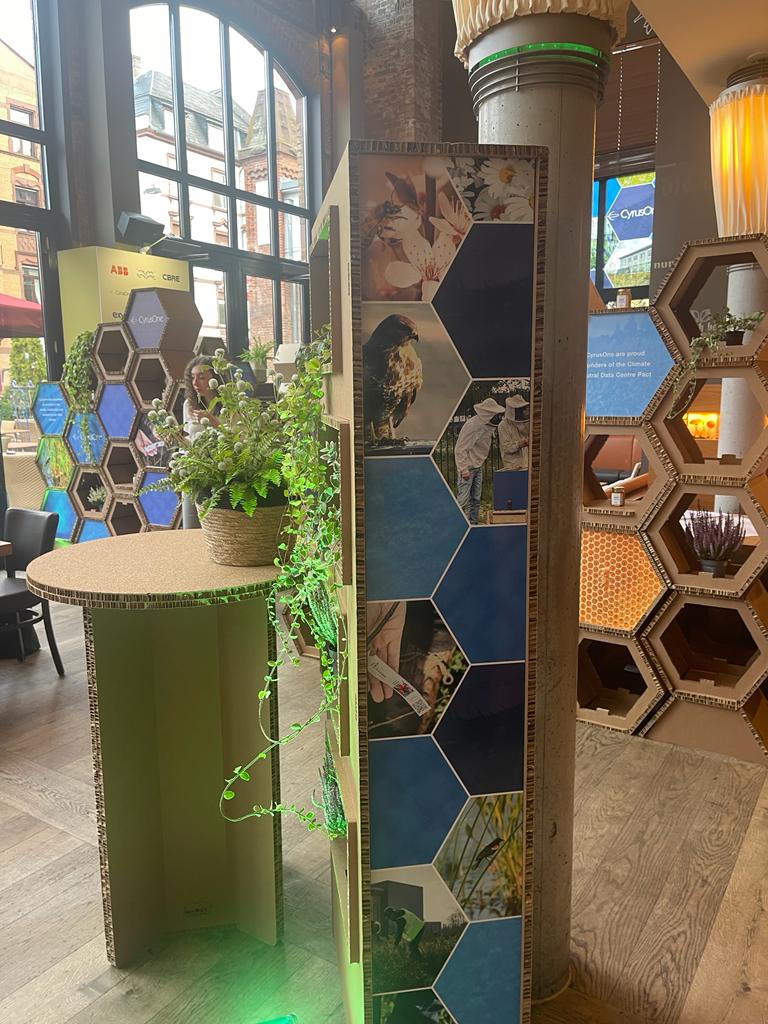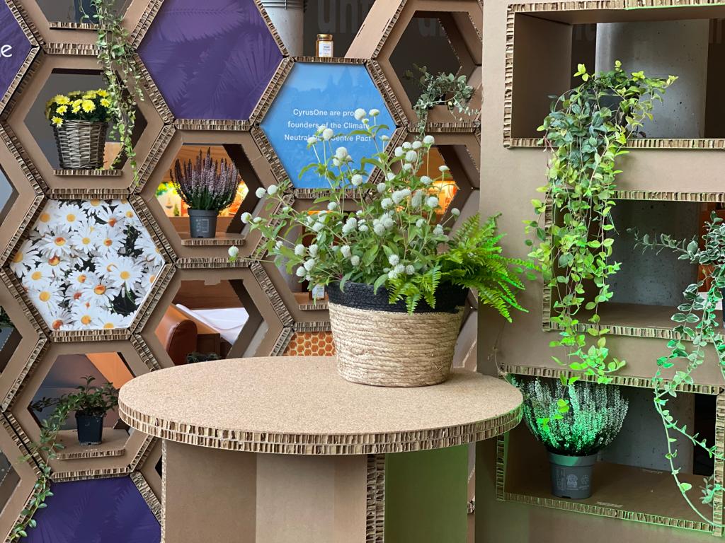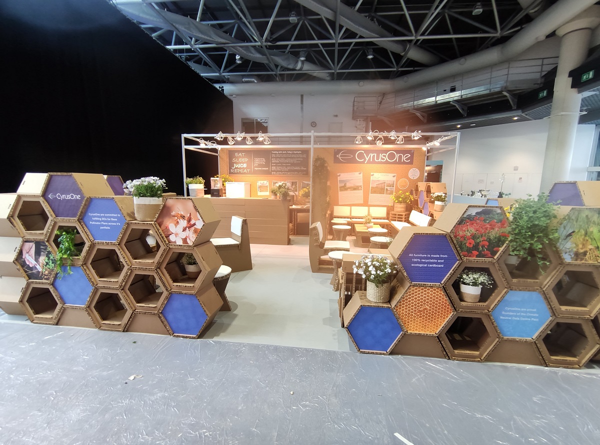“CyrusOne è stata entusiasta di riutilizzare i mobili in cartone ecologico e riciclabile al 100% per la seconda volta quest’anno, presentandoli alla prima conferenza tedesca sui data centers. L’intento era quello di creare uno spazio lounge rilassante e confortevole, dove clienti, partner e fornitori potessero continuare a informarsi su come stiamo sostenendo la biodiversità nei nostri siti europei.