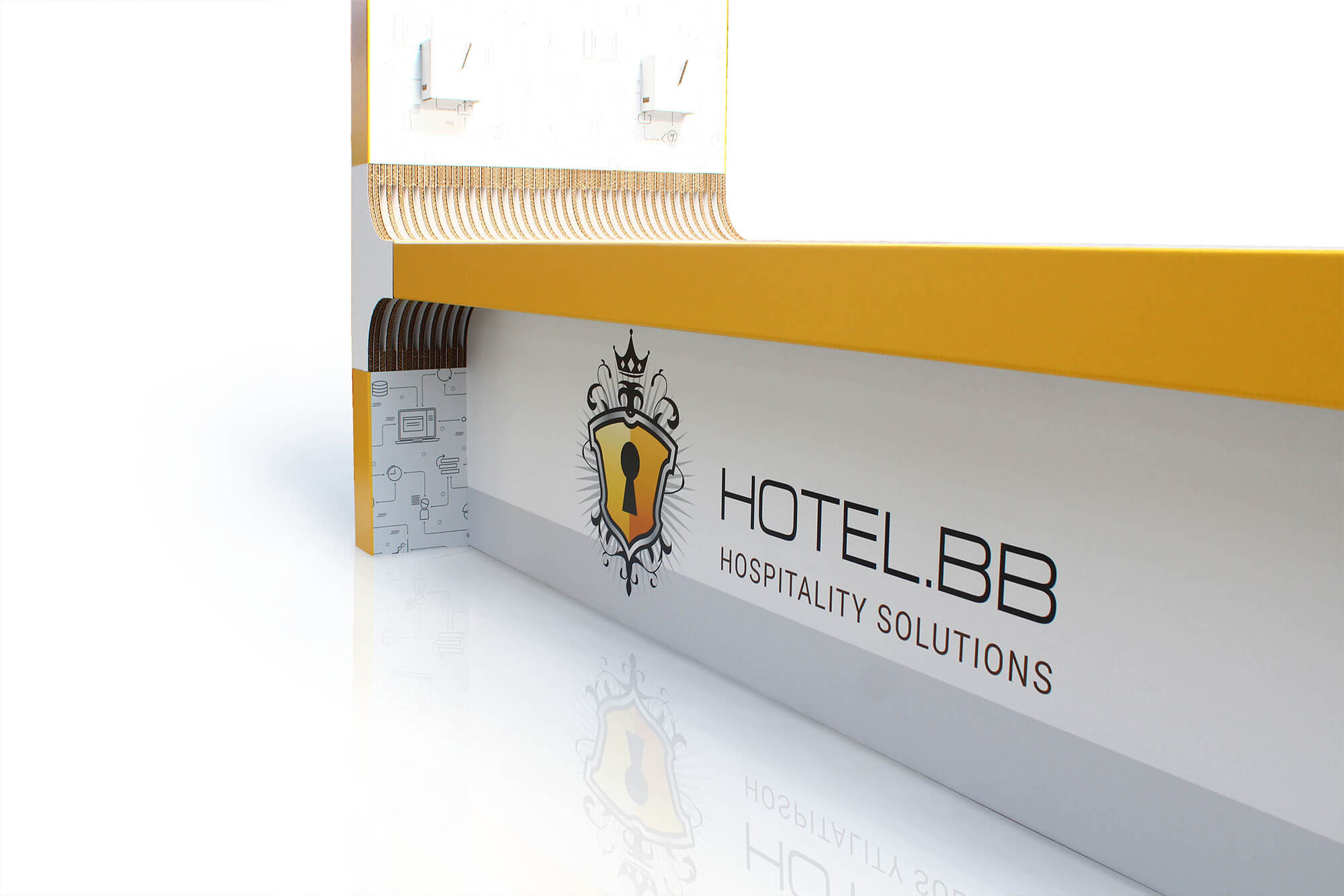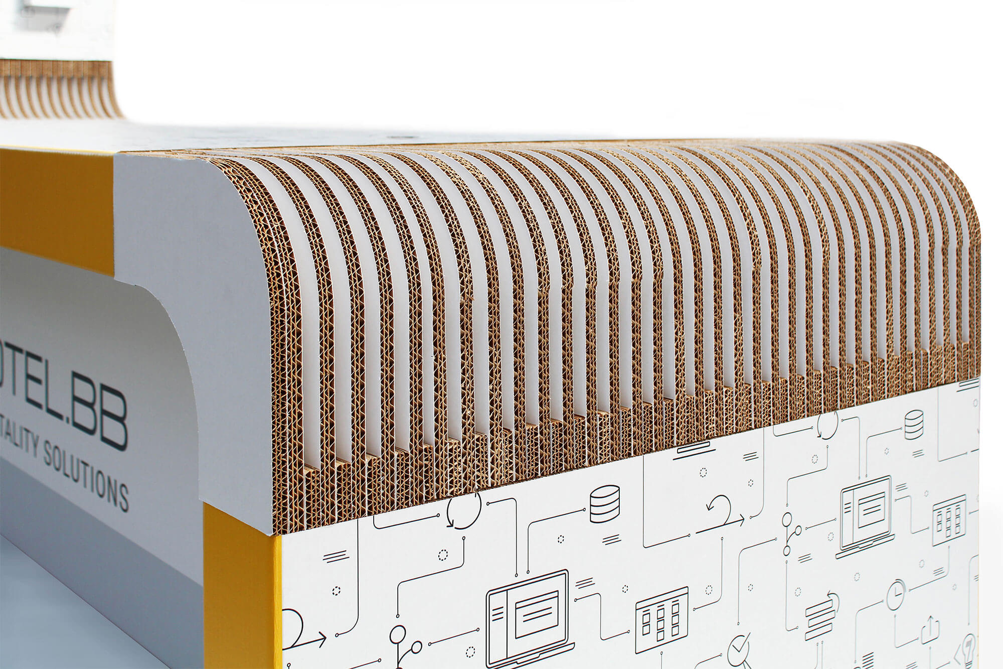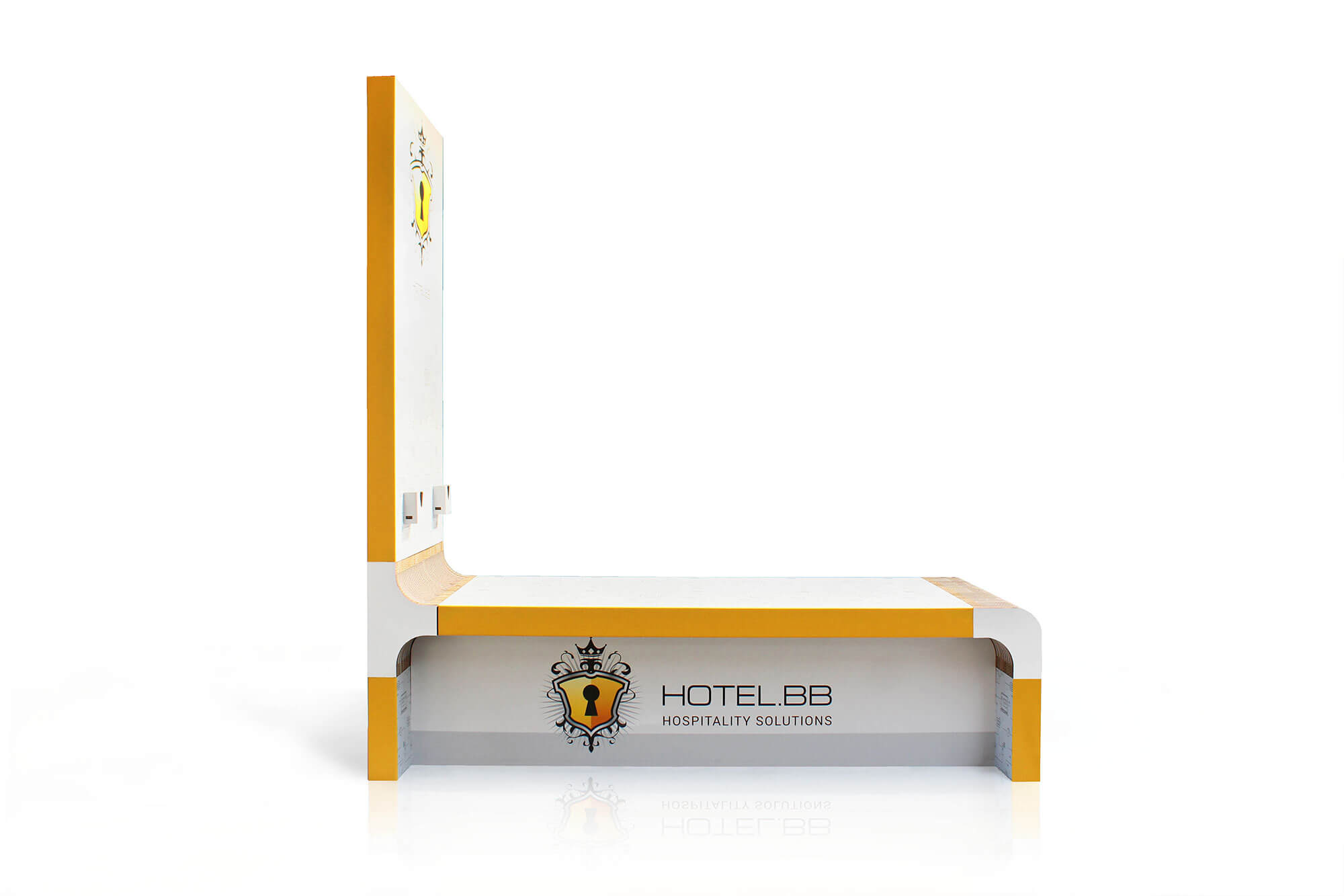 Per l’hotel BB abbiamo realizzato un espositore in cartone su misura che funge anche da banco reception, un modo originale e sostenibile per promuovere al propria immagine aziendale.