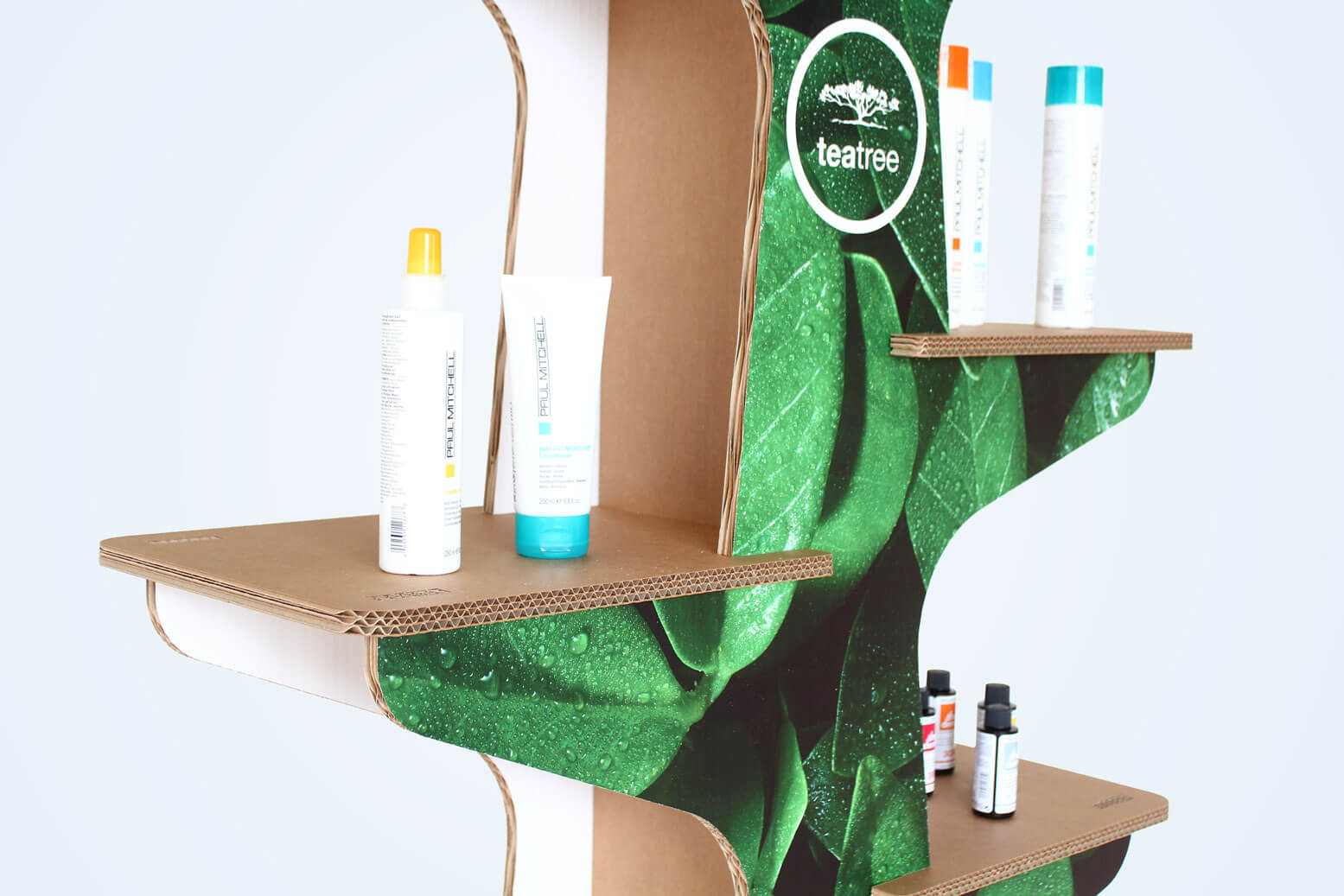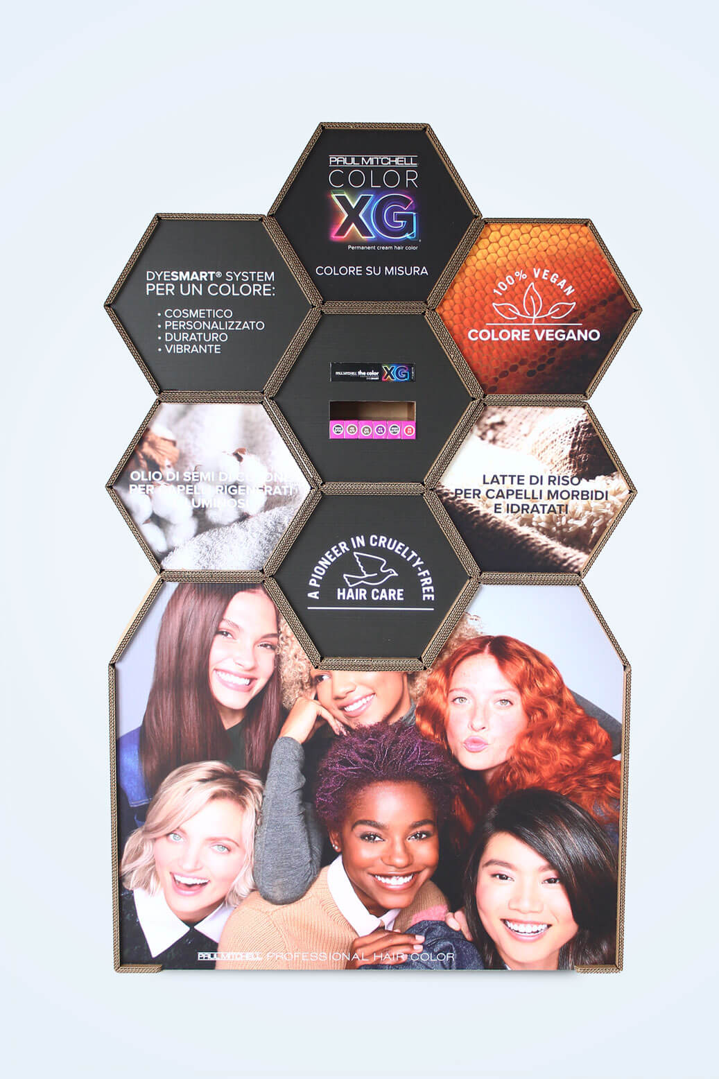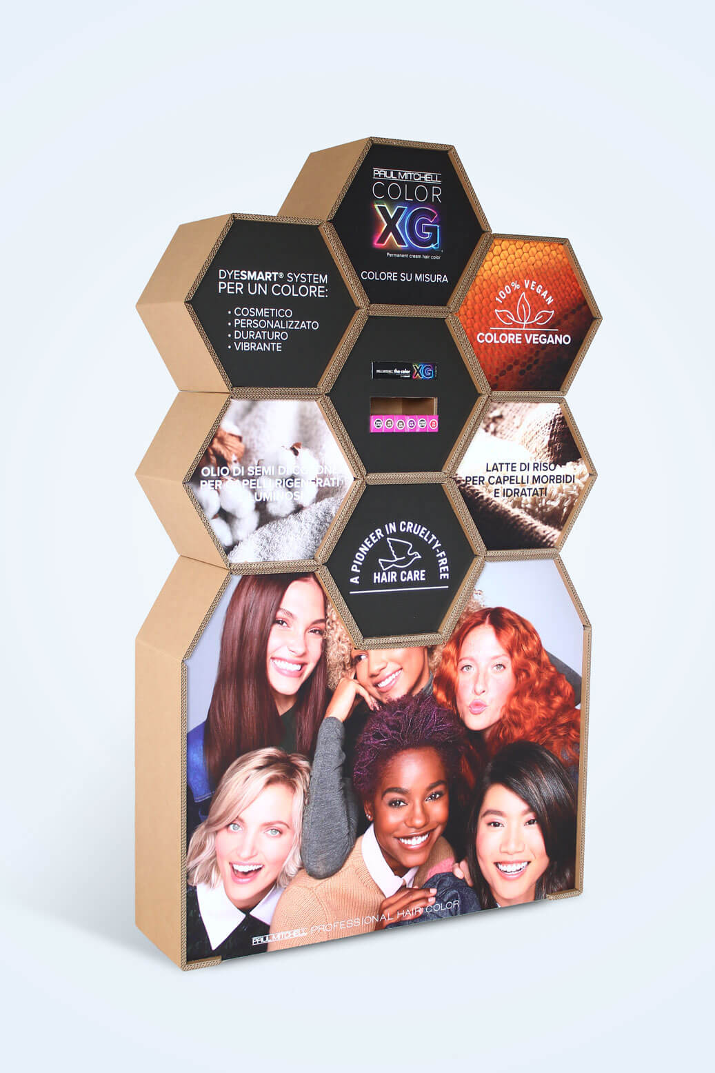 Paul Mitchell è uno dei brand più importanti nella vendita di prodotti professionali per la cura dei capelli e ha deciso di affidarsi alla creatività di NaturDesign per realizzare una serie di espositori in cartone su misura che sapessero mettere assieme innovazione e sostenibilità. Così sono nati vari prototipi connessi a diversi progetti, alcuni caratterizzati da un design esagonale modulare, caratteristica fondamentale per adattarsi alle dimensioni disponibili nei saloni di bellezza in cui andavano inseriti. Altri componibili, con un gioco ad incastri in stile tetris molto creativo e divertente. Altri ancora richiamavano le forme di un albero, con un ulteriore richiamo alla natura. Tutti gli espositori sono stati concepiti per essere molto facili da montare, leggeri e compatti da trasportare e personalizzabili con grafiche ad alta definizione. Il rapporto di collaborazione con il marchio Paul Mitchell continua da anni, all’insegna di uno scambio stimolante di idee.