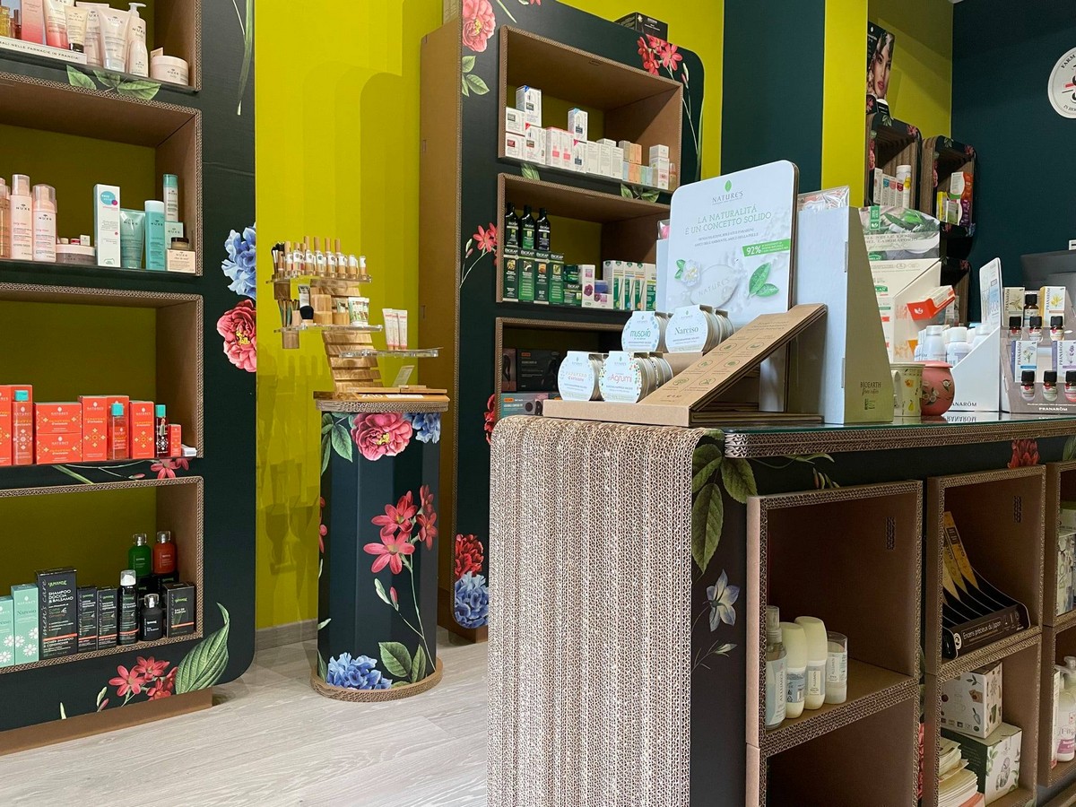 Arredi in cartone per il nuovo punto vendita dedicato a benessere e bellezza