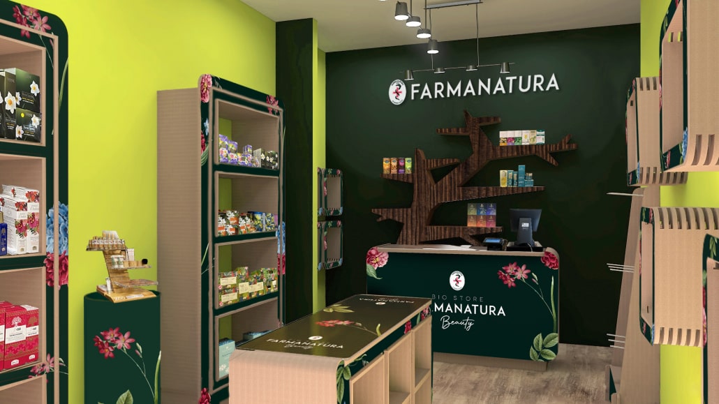 Allestimento negozio ecosostenibile per Farmanatura Beauty