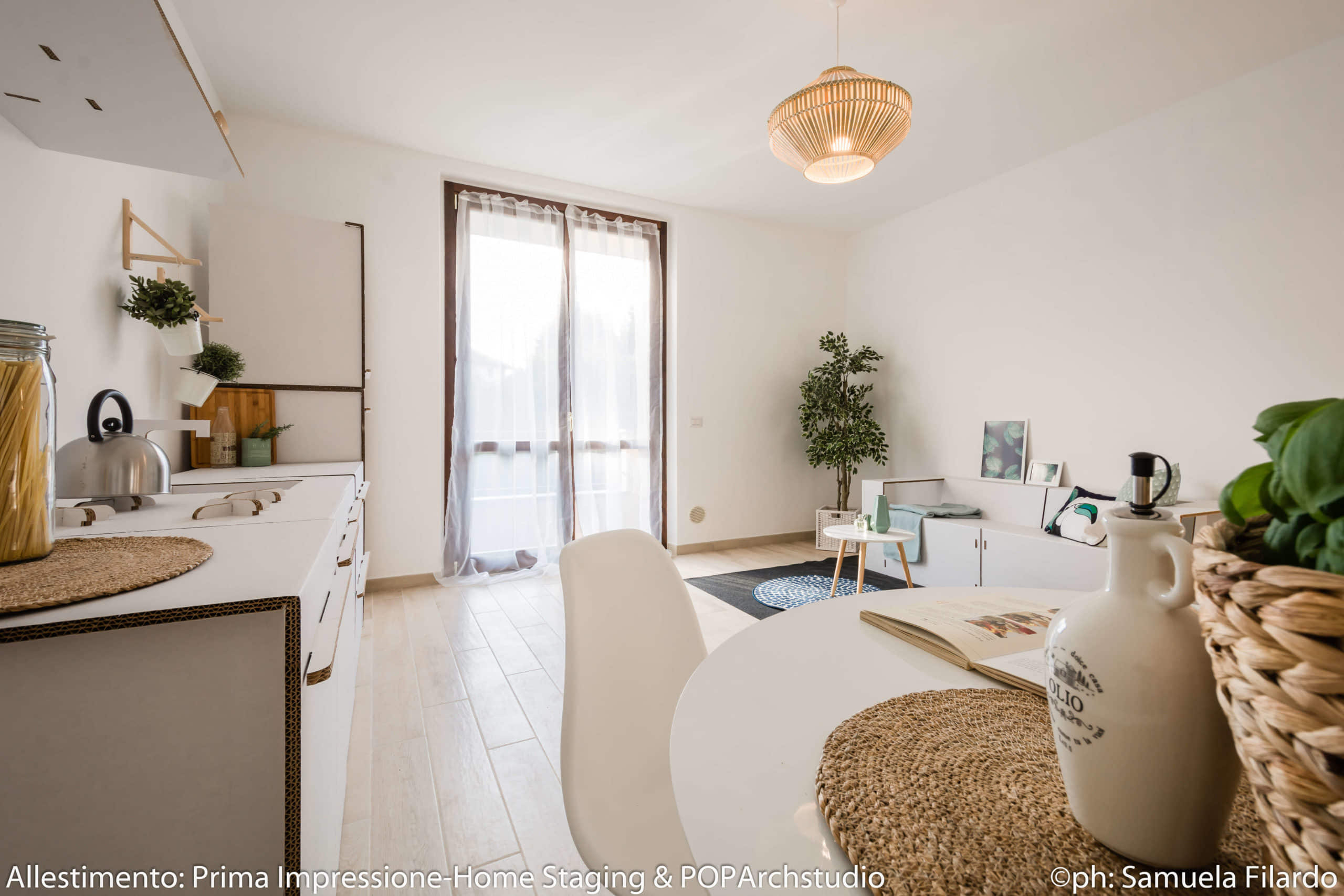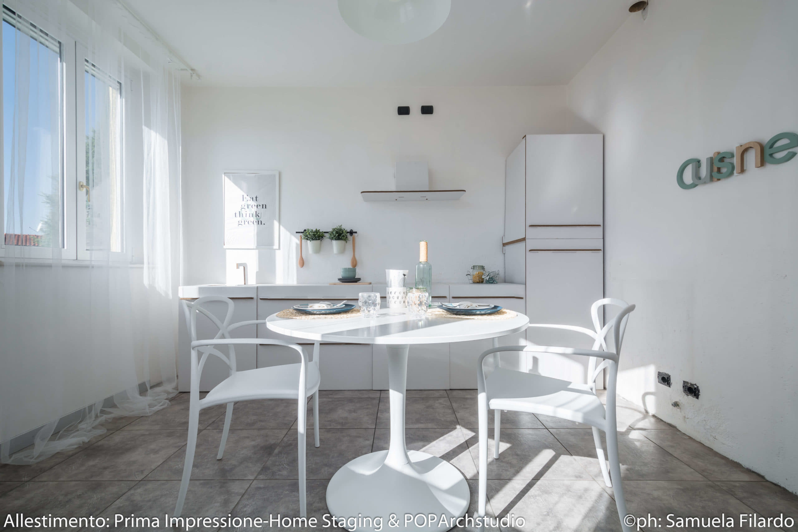 Pop Arci studio ha scelto di valorizzare l’ambiente con una cucina bianca della linea Lia, moderna e lineare che si adatta perfettamente ad ogni ambiente conferendo un’atmosfera moderna e pulita. Le grandi aperture e la tinta chiara del pavimento rendono luminosa ed accogliente la stanza, dettagli mesi ancora più in evidenza dalle forme  di ultima generazione della cucina Lia. Le nostre soluzioni per gli allestimenti Home Staging sono una scelta consapevole e sostenibile che accompagna il tuo progetto ad un sicuro successo.