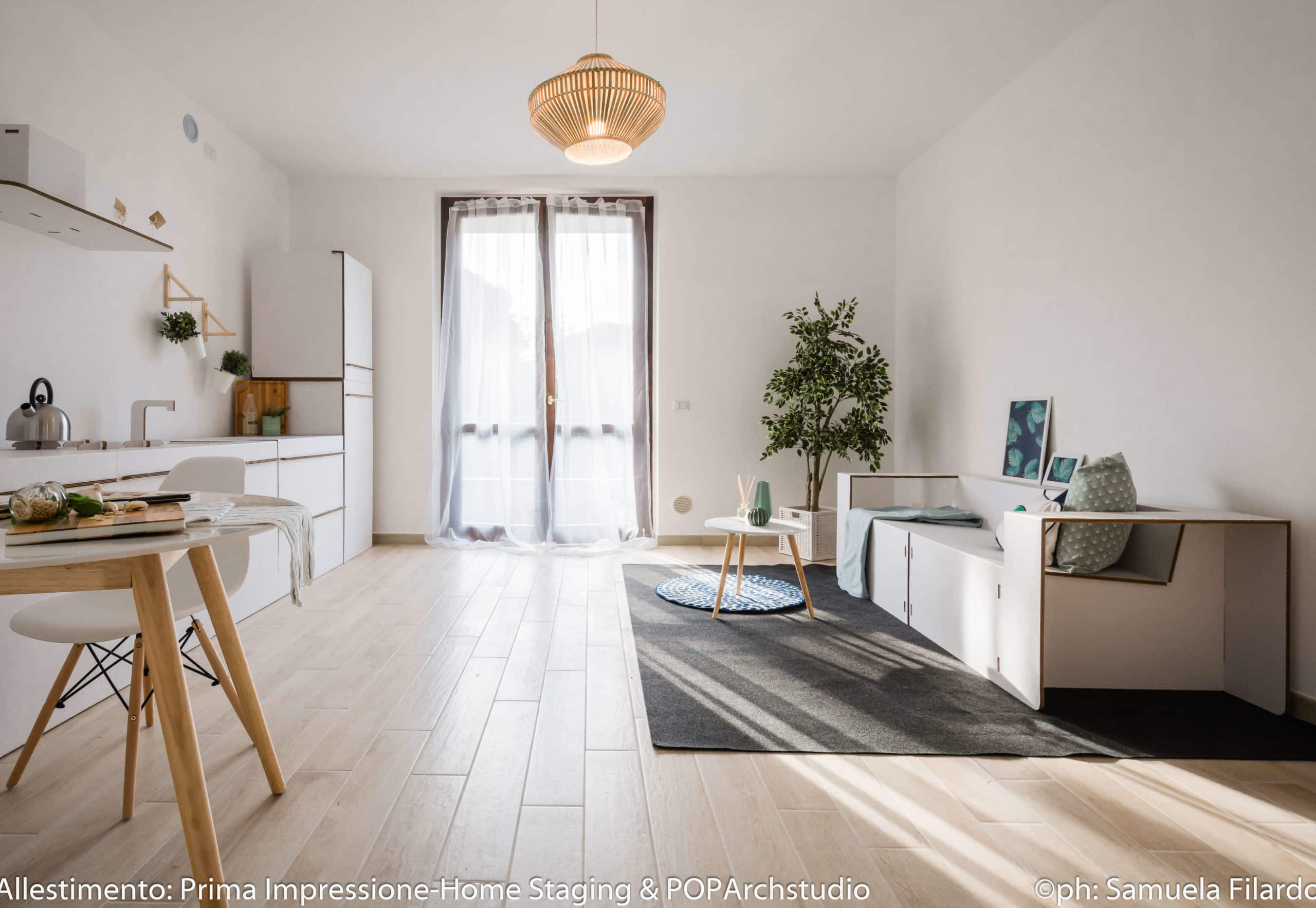 Prima Impressione e PopArchi studio hanno realizzato un allestimento home staging sfruttando lo stile minimalista e moderno dei mobili di Natur Design.