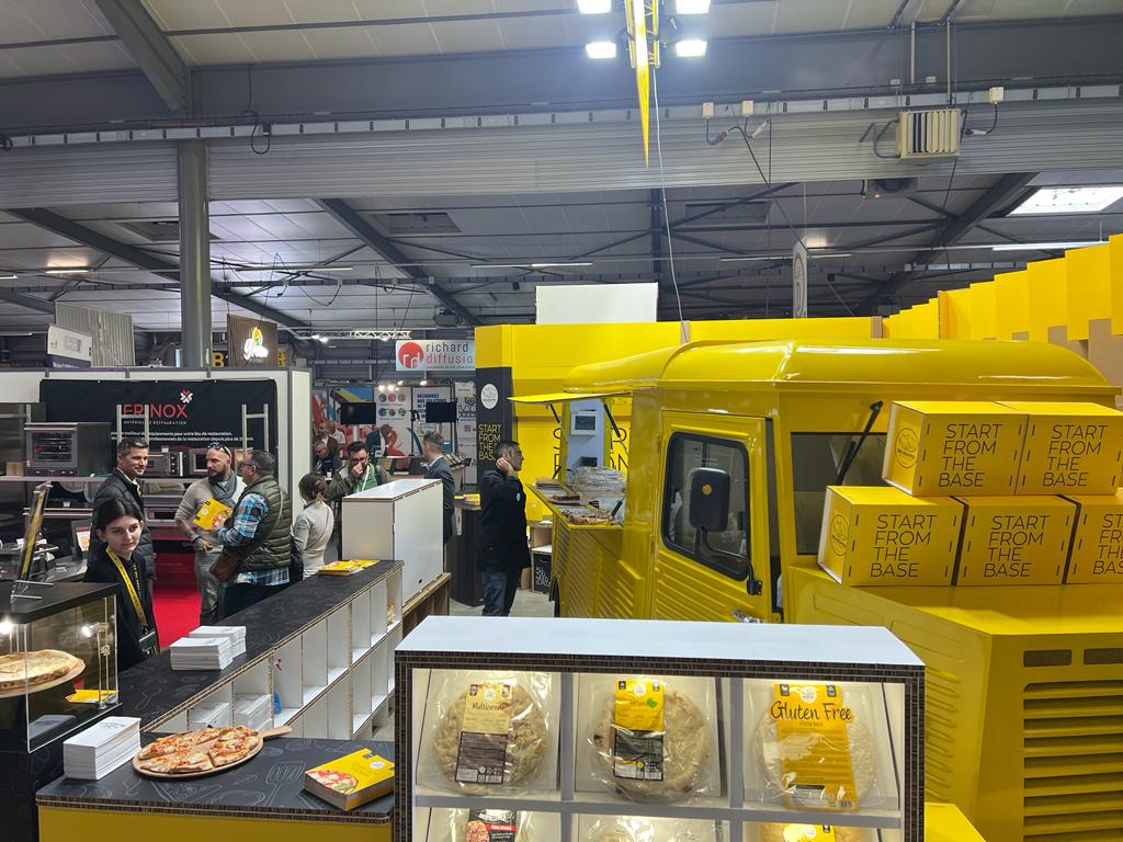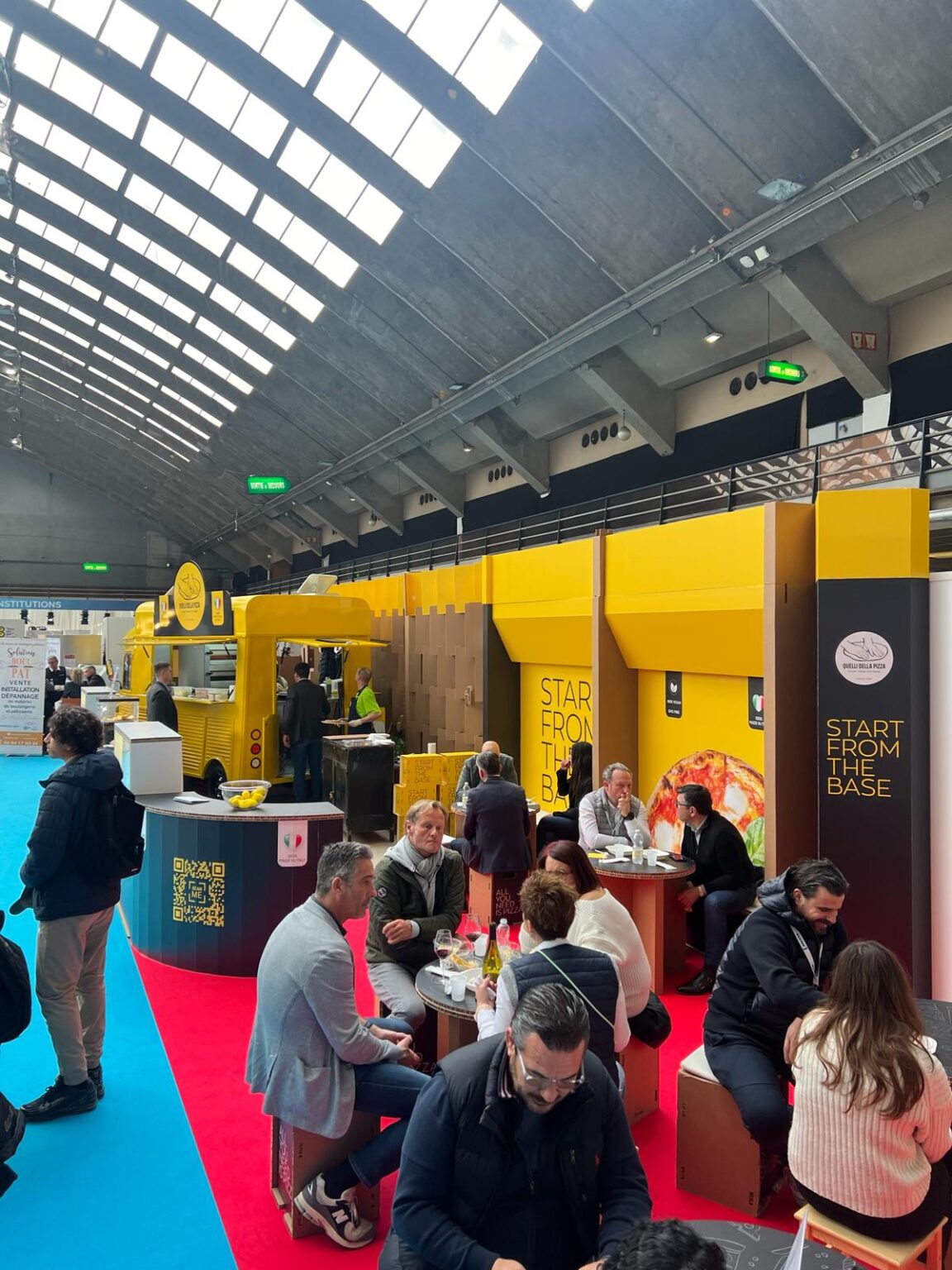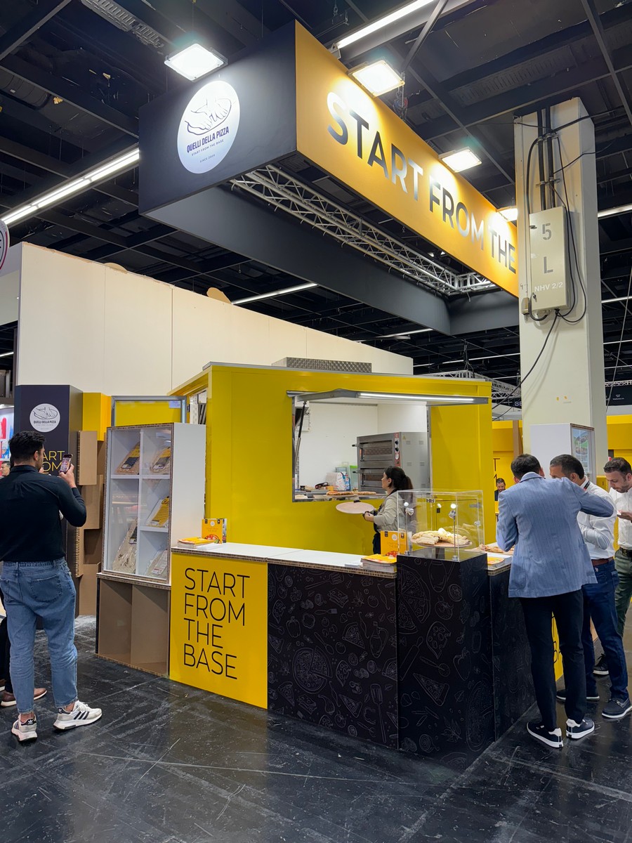 Il cuore dello stand era rappresentato da un food truck con finestra a vista da cui venivano sfornate pizze in tempo reale circondata da un’originale sala di assaggio. Questa vetrina culinaria ha catturato l’attenzione dei visitatori, offrendo loro la possibilità di gustare direttamente le prelibatezze di Quelli della Pizza. Di fronte al food truck, un banco di assaggio invitava i visitatori a degustare le pizze realizzate con la gamma di basi che l’azienda promuove, evidenziando l’angolo dedicato al take-away veloce.