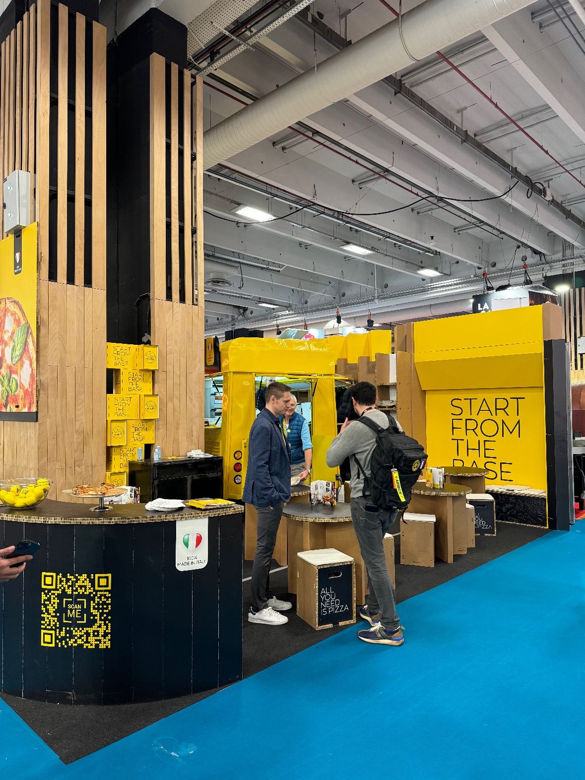 La performance eccezionale di Quelli della Pizza alla fiera con il suo stand per fiera innovativo in cartone alveolare, è stata un trionfo di creatività e funzionalità . Il design dello stand è stato studiato per creare un’esperienza coinvolgente e autentica per i visitatori, incanalando l’essenza di “quelli della pizza” e il loro impegno per la ricerca della qualità .