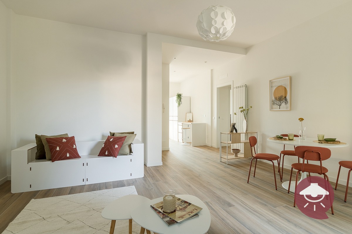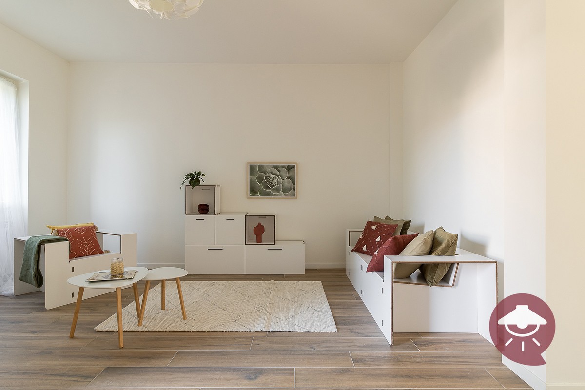 Paola ha scelto di utilizzare mobili in cartone per conferire a questo appartamento vintage un tocco contemporaneo e sostenibile. I mobili per Home Staging di Natur Design , oltre a rispettare l’ambiente, sono progettati per adattarsi ad ogni ambiente e capaci quindi anche di trasmettere un’atmosfera nostalgica, richiamando i tempi passati con un tocco di innovazione. Gli elementi di arredo sono stati selezionati con cura per integrarsi armoniosamente con l’estetica dell’abitazione in abbinamento ad altri arredi.