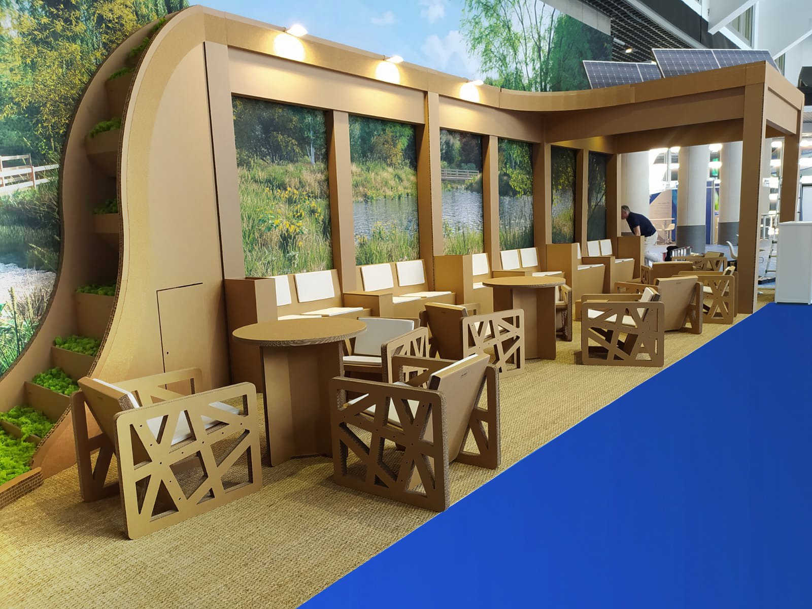 La scelta di uno stand in cartone per eventi e fiere offre un’esperienza senza pari. La personalizzazione completa consente di creare ambienti unici, mentre il montaggio chiavi in mano semplifica ogni fase. La leggerezza dei materiali ecologici e riciclabili non solo contribuisce a ridurre l’impatto ambientale dell’evento, ma facilita anche il trasporto riducendone i costi non solo in termini economici. L’originalità del design, esaltata dalla finitura naturale, cattura l’attenzione e crea uno spazio memorabile. In sintesi, uno stand in cartone fonde sostenibilità, creatività e arredamento ecosostenibile, offrendo un impatto visivo unico e contribuendo all’ecosostenibilità degli eventi.