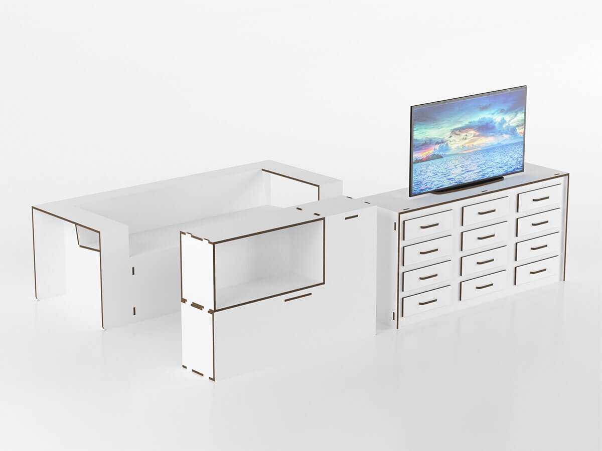 I mobili in cartone NaturDesign sono progettati per essere smontati e riposti in apposite scatole che, se conservate, serviranno a stipare i prodotti in uno spazio molto contenuto.