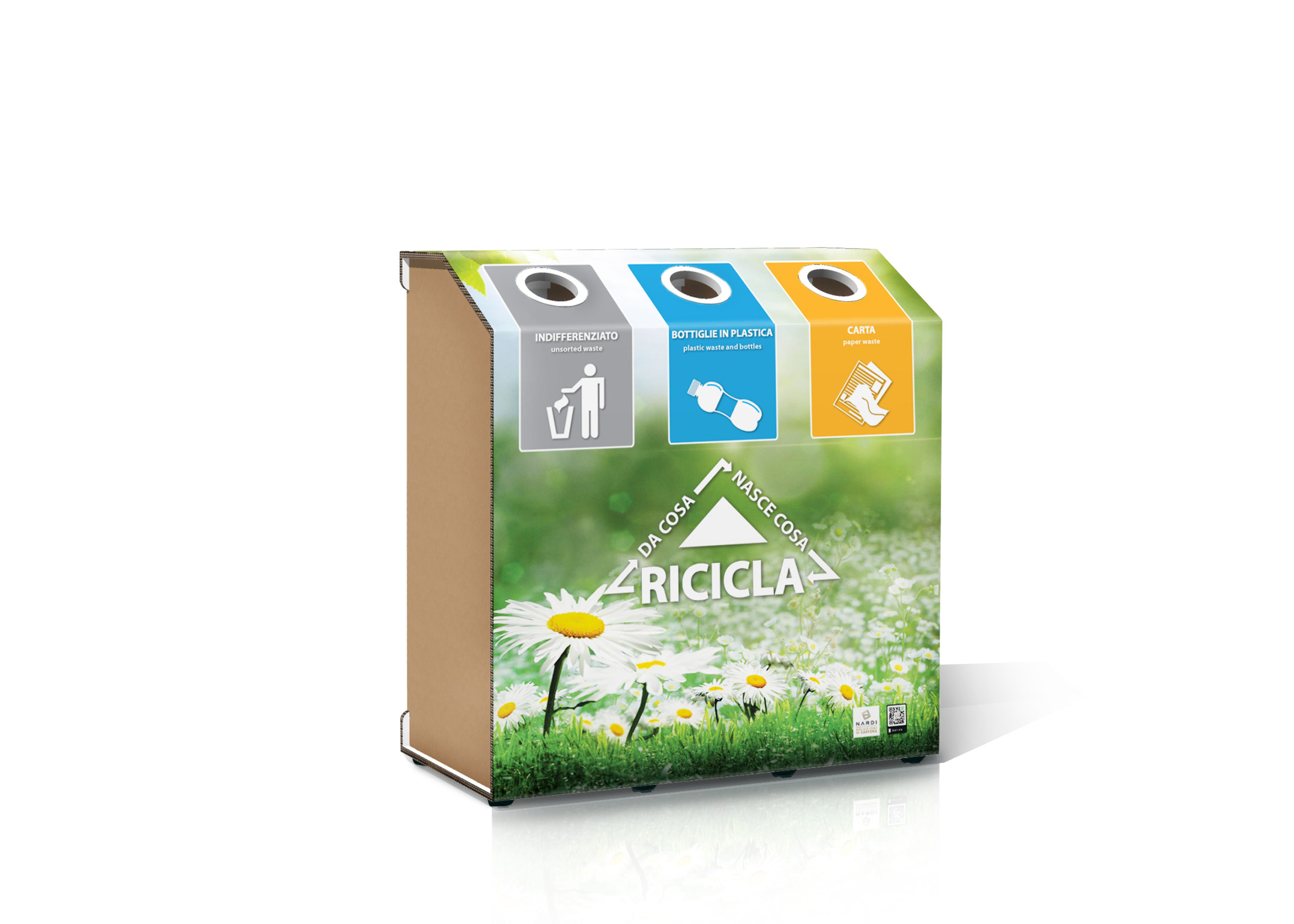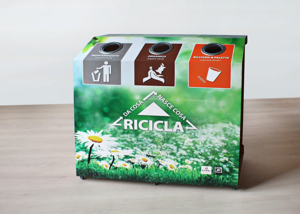 Il modulo è dotato di scomparti interni dedicati alla differenziazione dei rifiuti rendendo più agevole la rimozione dei sacchetti e il corretto smaltimento dei materiali. Le ruote integrate facilitano lo spostamento e il posizionamento, garantendo massima praticità.