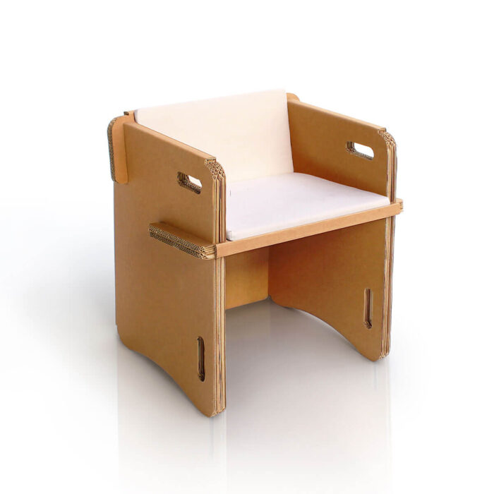 Taviela รจ una sedia in cartone dalle forme semplici e pulite e allo stesso tempo confortevole รจ pratica nellโ€™uso. Tavielasi presta per essere utilizzata in svariate occasioni: da sedia interlocutoria ,dโ€™ufficio, dโ€™attesa in unโ€™area relax, oppure intorno ad un tavolo riunioni. Eโ€™ una sedia con braccioli, accogliente, con sedile e schienale inclinati per dare una buona ergonomia, molto squadrata , dal design semplice. Semplice anche nel montaggio e smontata occupa uno spazio minimo.