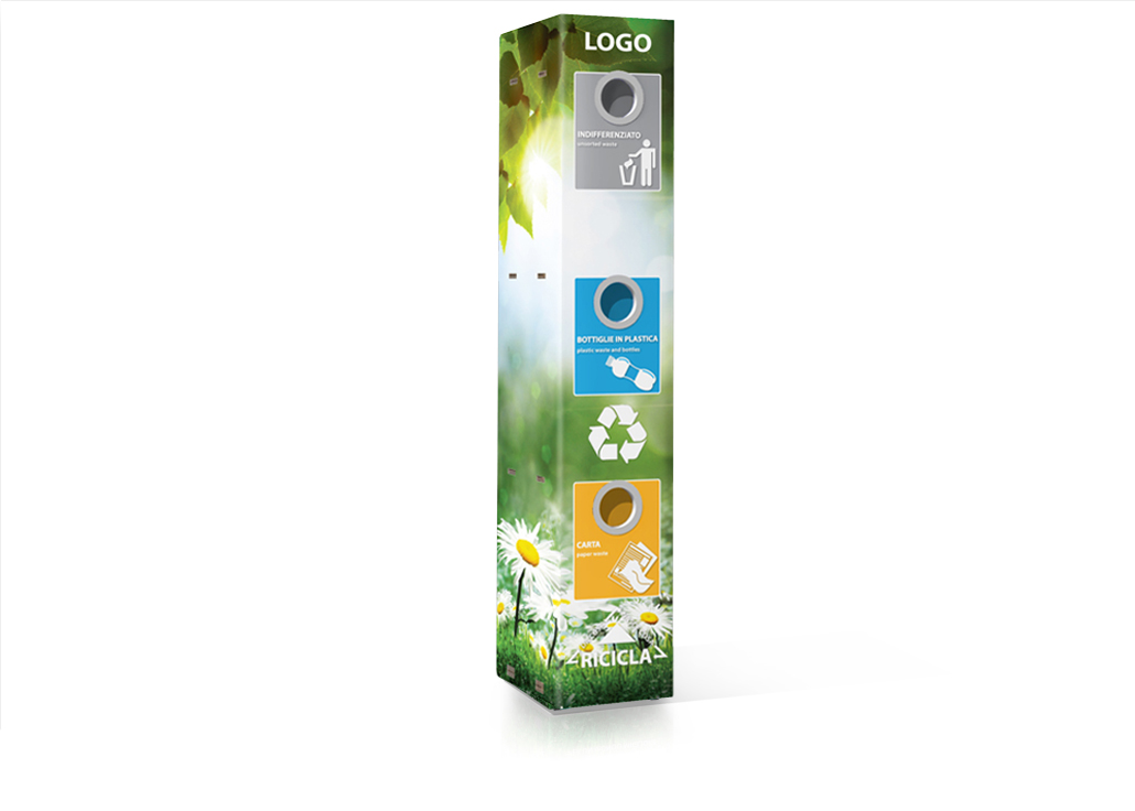 Il differenziatore a colonna con tre vani è un dispositivo versatile per allestire  le aree per il vending. Realizzato in cartone personalizzabile con grafiche accattivanti sui vani esterni, è ecologico e sostenibile. È dotato di trattamento superficiale idrorepellente e ruote per facilitare il movimento. Ogni vano è accessibile tramite 3 cassetti estraibili, ideali per la raccolta differenziata. Questo prodotto si integra perfettamente nei rivestimenti dei modelli di distributori automatici Payer, Velan e Profa, migliorando l’organizzazione e l’attrattività visiva delle aree vending. Concepito per ottimizzare lo spazio e facilitare la gestione dei prodotti, il differenziatore a tre vani rappresenta una soluzione pratica e esteticamente gradevole per ambienti di vending.