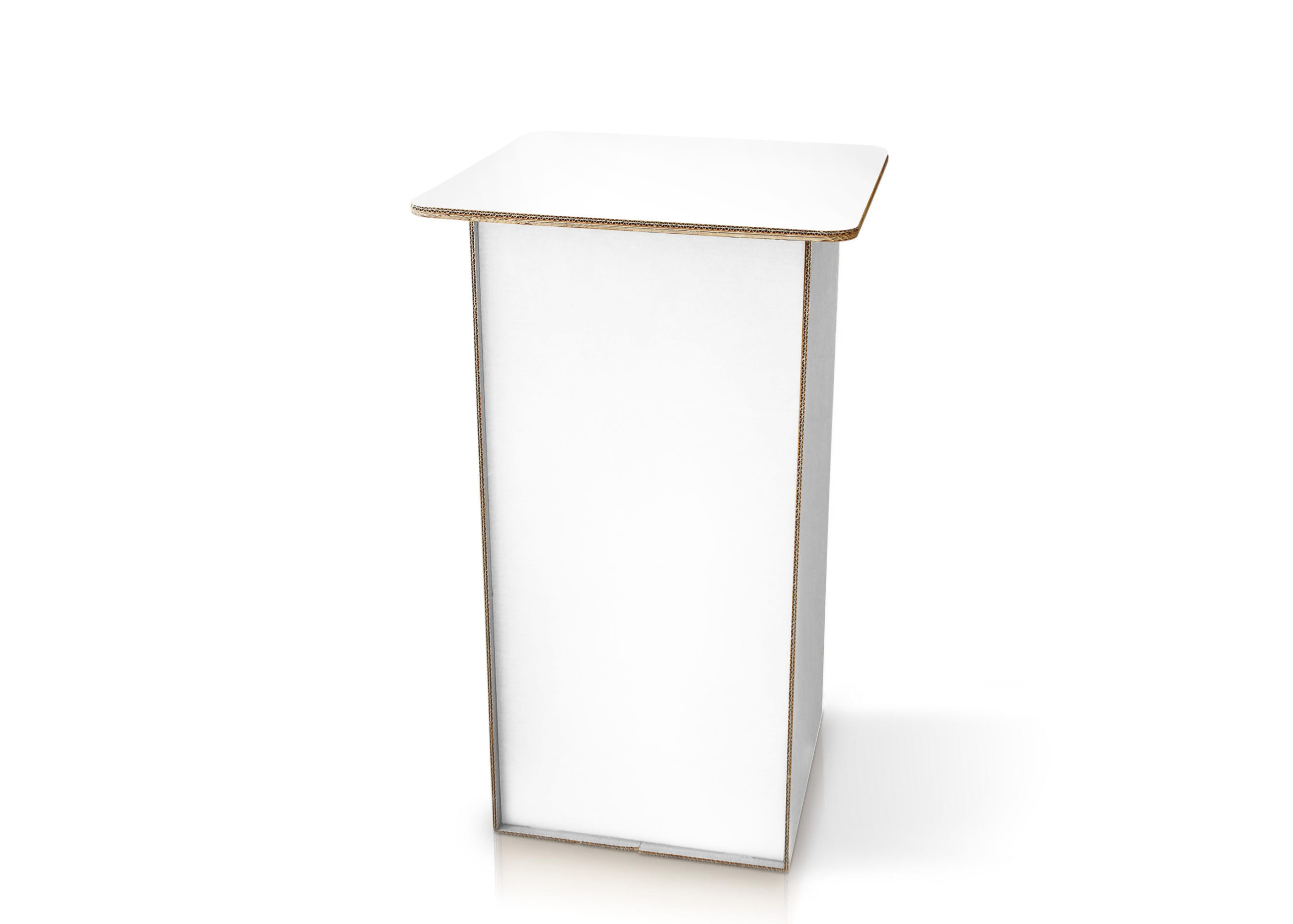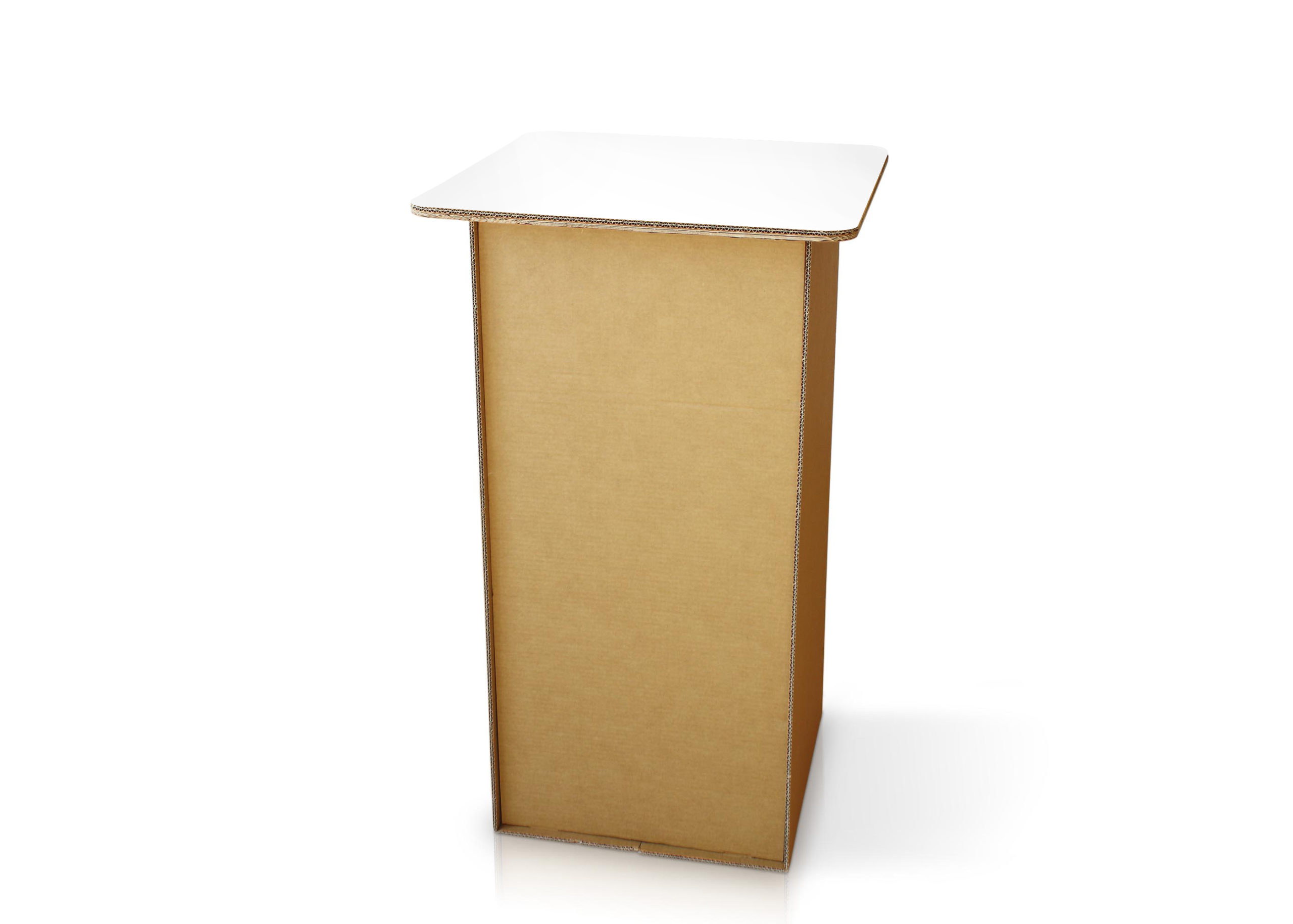Realizzato completamente in cartone naturale, il tavolino aggiunge un tocco di naturalezza agli ambienti, mentre la possibilità di personalizzare le superfici del piano e delle gambe con stampe e colori ad alta definizione lo rende un veicolo stilizzato per il messaggio del brand. Disponibile nelle finiture avana naturale o bianco, il piano può essere realizzato in cartone o su richiesta in laminato ecologico, aumentandone la resistenza all’usura.