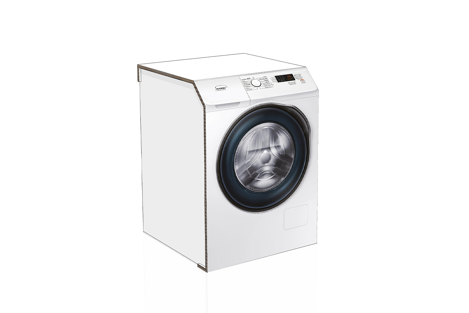 Immagina una lavatrice stampata in cartone, progettata per l’arredo bagno nell’Home Staging.