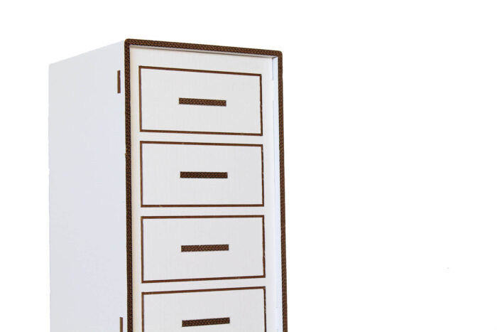 La cassettiera settimanale moderna in cartone per gli allestimenti dimostrativi di Home Staging è una soluzione versatile per arredare la zona notte. Realizzato in cartone da 14 millimetri con cassetti tagliati usando una nuova tecnica di lavorazione, offre un aspetto moderno e efficace. Questo complemento può essere utilizzato singolarmente o abbinato ad altre soluzioni, aiutando ad armonizzare gli spazi e aggiungendo un tocco scenografico di impatto. Facile da montare e leggero, il settimanale in cartone rappresenta una scelta pratica e decorativa per valorizzare l’immobile in vendita. La sua resa minimalista e funzionale si adatta a diversi stili, offrendo un allestimento di qualità che lascia una buona impressione sui potenziali acquirenti.
