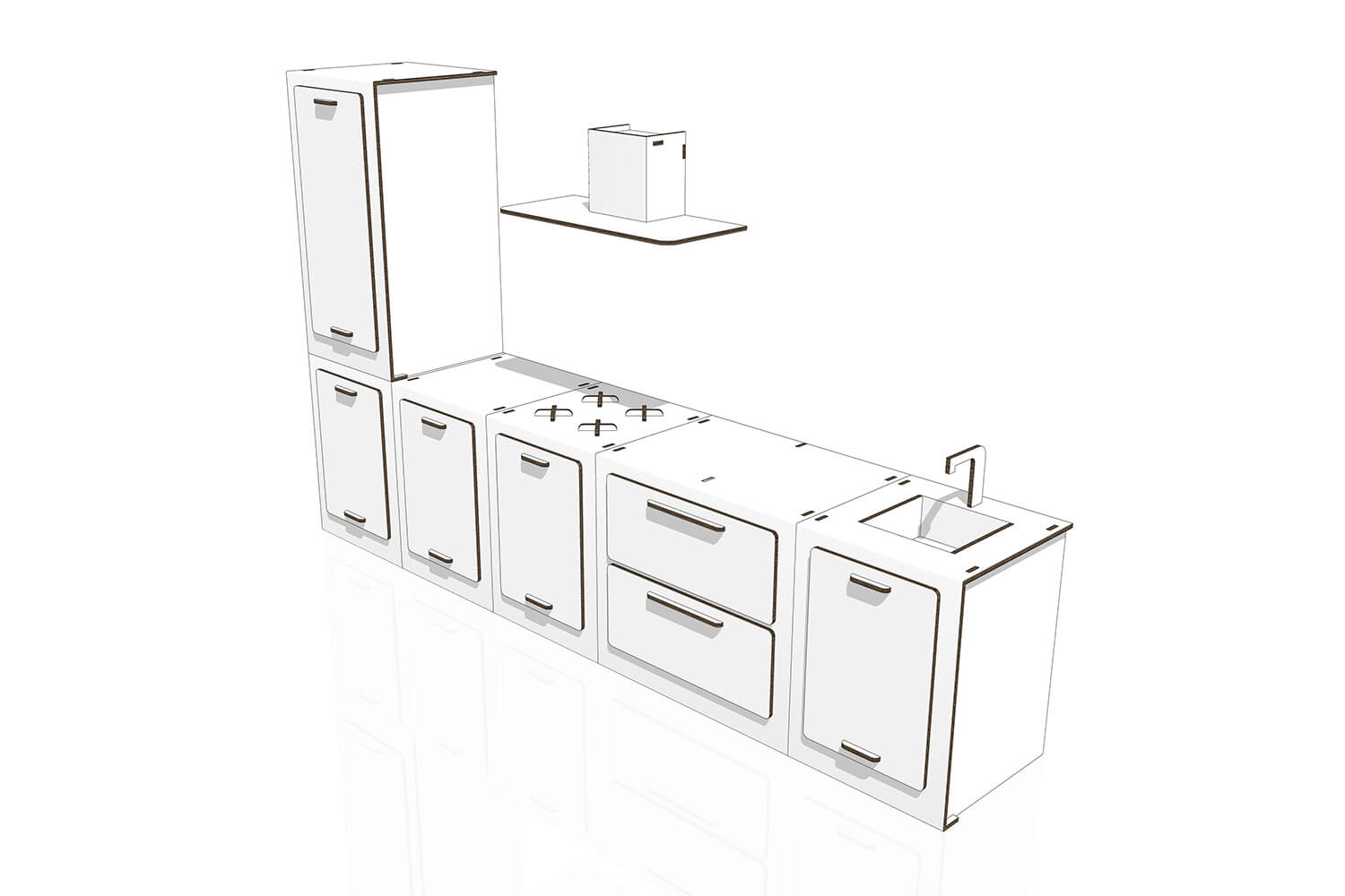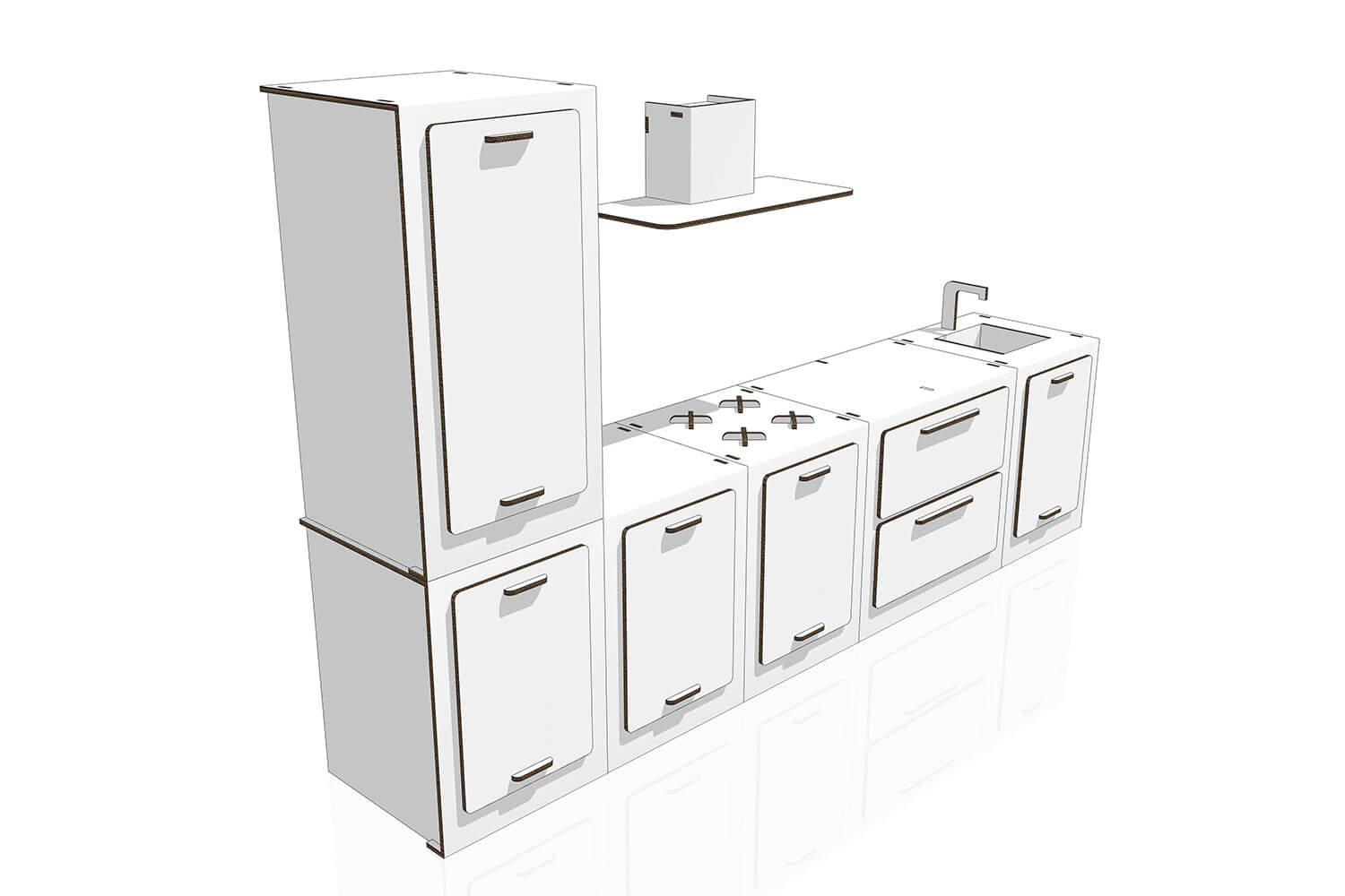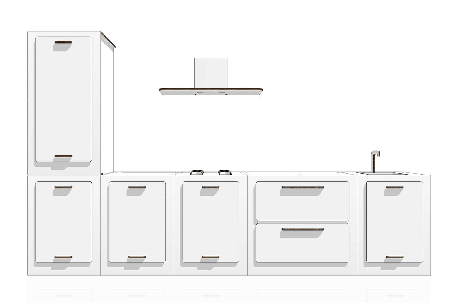 Questo bundle ha tutto quello che ti serve per valorizzare la cucina di un appartamento in vendita. Chi si occupa di home staging lo sa bene, presentare immobili privi di cucina non aiuta la vendita. Approfitta allora di questo kit per creare una zona giorno funzionale ed elegante. Grazie a questi mobili in cartone potrai comporre una cucina lineare di 330 cm, riadattabile in base alle tue esigenze grazie alla progettazione modulare. Lo stile classico e il bianco minimale degli arredi conquisteranno sicuramente i potenziali acquirenti.