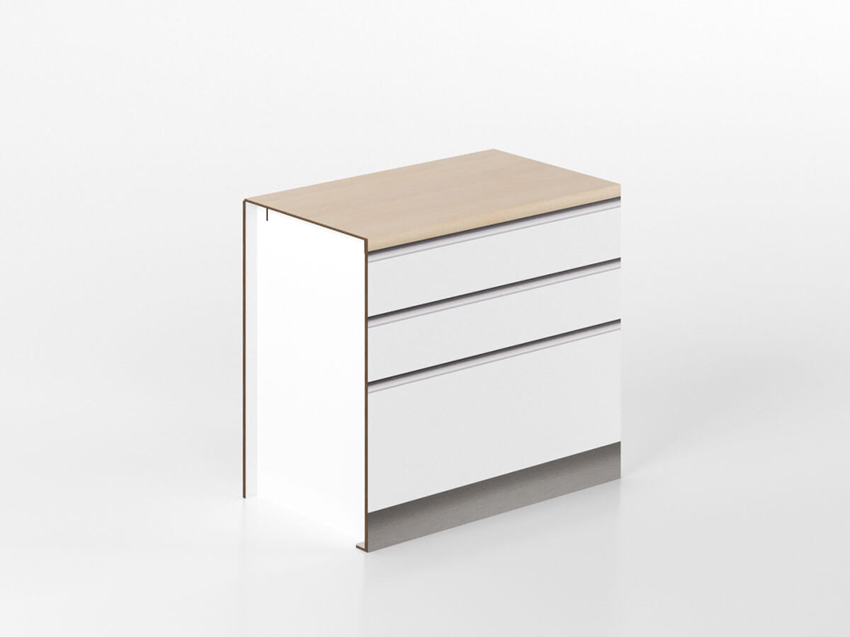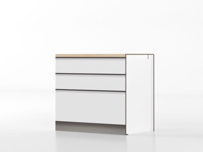 Rapidità e semplicità di montaggio sono la chiave della cucina Cassandra, niente strumenti, niente incastri, solamente una fisarmonica.