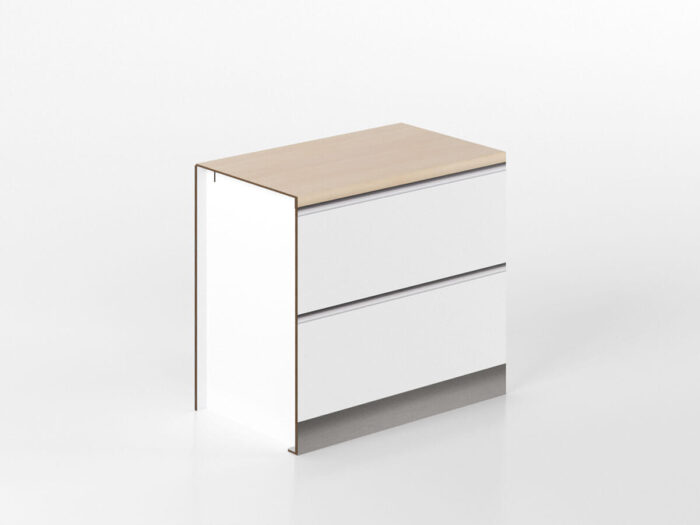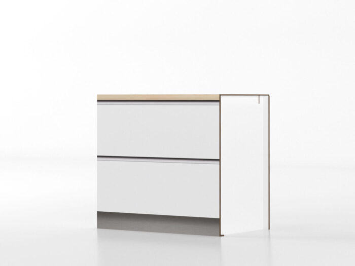 La base cassettoni da 90 cm della linea Cassandra è un elemento modulare ideale per creare allestimenti versatili e personalizzati. Grazie alla sua struttura in cartone naturale, è leggera, maneggevole e facile da montare, rendendola perfetta per chi ha bisogno di soluzioni rapide e pratiche. Il sistema a soffietto consente di aprirla e chiuderla in pochi secondi, ottimizzando i tempi di allestimento. La modularità di questa base permette di coprire grandi spazi utilizzando più moduli, oppure di creare cucine compatte con meno elementi, in base alle esigenze. Il design moderno è esaltato dalla stampa ad alta definizione che combina il bianco del fronte con un elegante top effetto rovere chiaro. Questa base si adatta perfettamente a qualsiasi spazio e stile, creando ambienti confortevoli ed armoniosi, perfetti per valorizzare le aree dimostrative o gli spazi in vendita