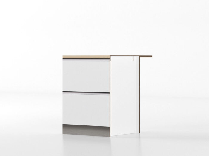 Rapidità e semplicità di montaggio sono la chiave della cucina Cassandra, niente strumenti, niente incastri, solamente una fisarmonica.