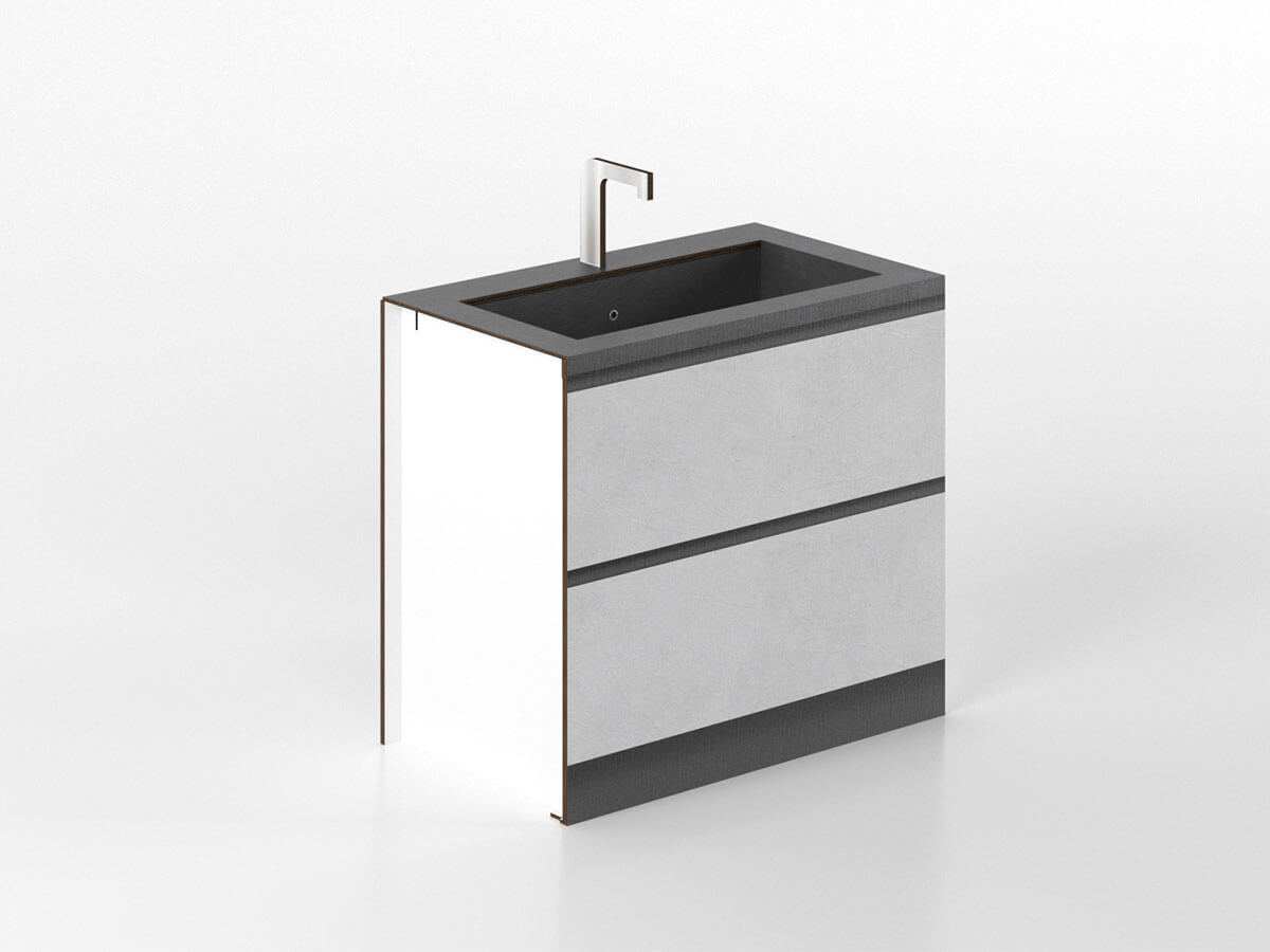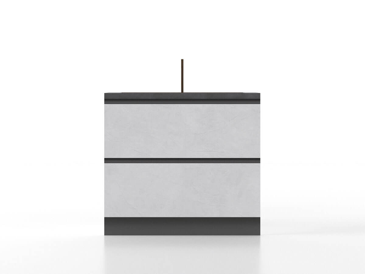 La nuova base lavandino da 90 cm della linea cucina home staging Cassandra è la soluzione ecologica perfetta per allestimenti moderni e funzionali. Realizzata in cartone leggero e maneggevole, questa base è progettata per essere facilmente spostata e montata, garantendo praticità durante il processo di allestimento. Il suo design essenziale la rende un modulo fondamentale per completare qualsiasi cucina, conferendo un aspetto ordinato e raffinato. Le stampe ad alta definizione sul fronte riproducono due cassettoni con finiture in gres, mentre il piano in elegante colore antracite aggiunge un tocco di modernità. Grazie al suo effetto realistico, la base lavandino offre una soluzione pop-up che impressiona, rendendo ogni spazio visivamente accattivante. Ideale per chi cerca un mix di sostenibilità e stile, questa base rappresenta un’ottima scelta per trasformare rapidamente gli ambienti senza compromettere l’estetica