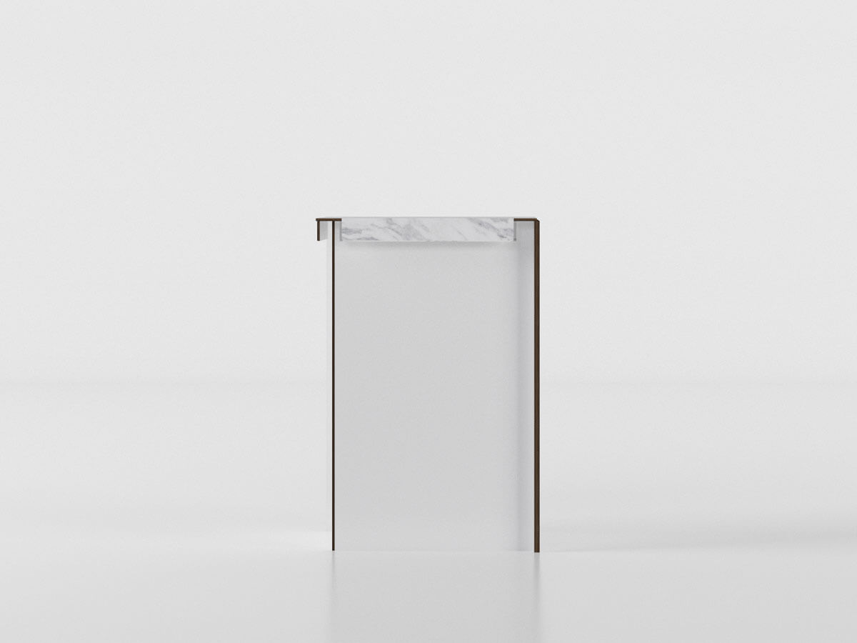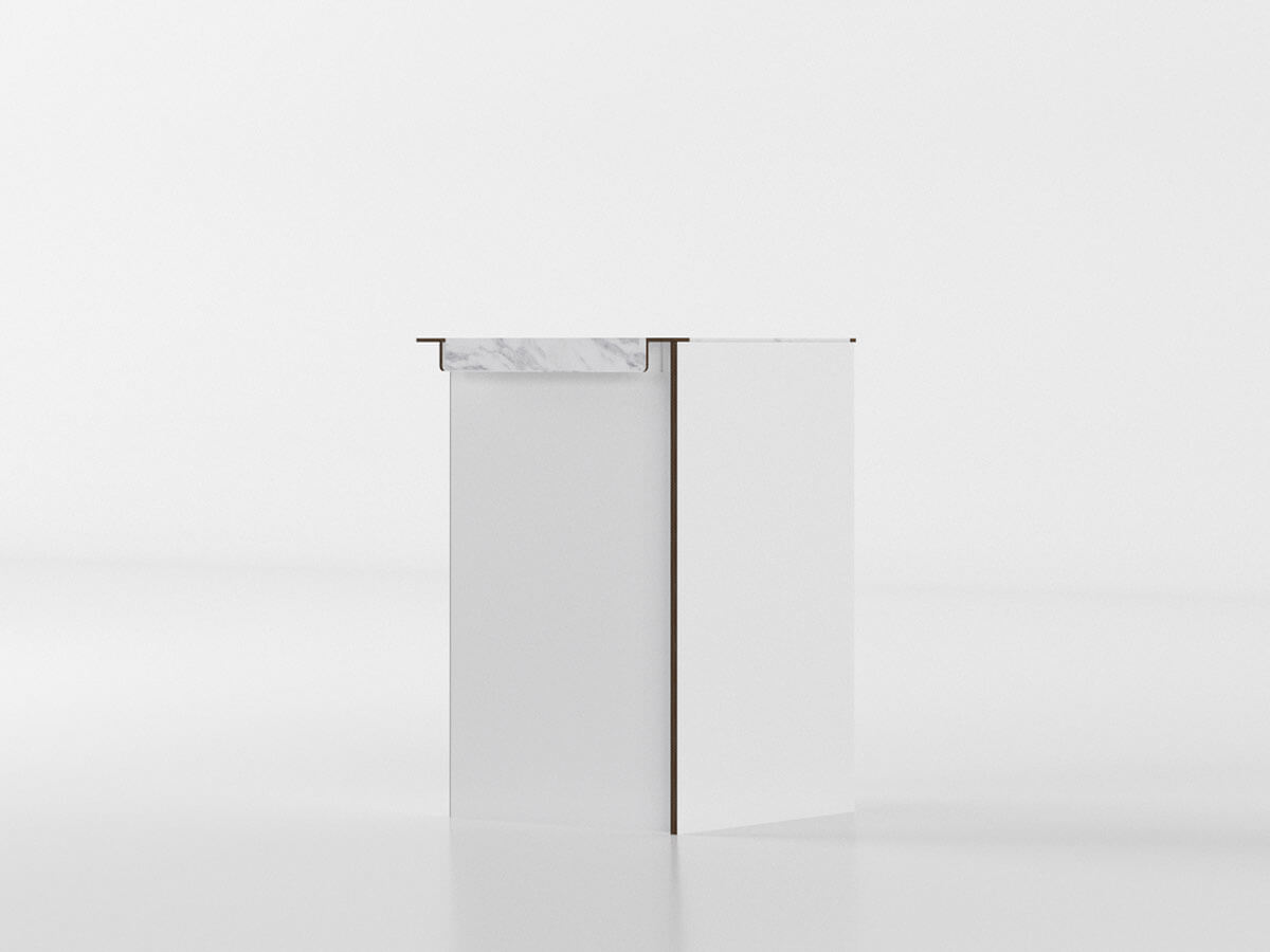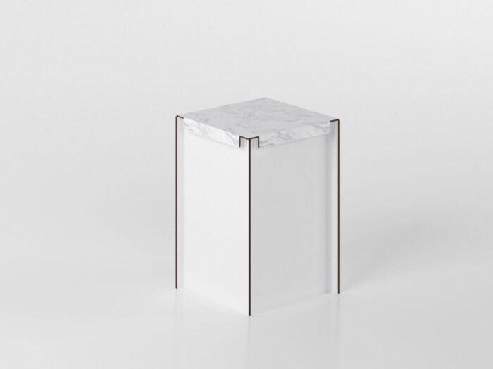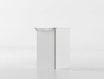 Realizzata in cartone da 7 mm, la base è estremamente leggera e facile da montare, rendendo l’allestimento rapido e semplice, perfetto per l’home staging. Il piano superiore presenta una raffinata stampa effetto marmo, che aggiunge un tocco di eleganza e modernità, mentre la struttura complessiva si integra perfettamente con gli altri moduli della linea Cassandra.