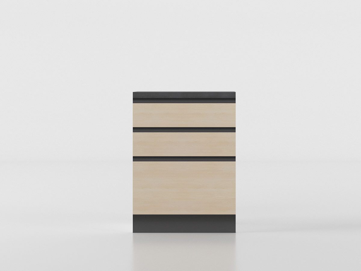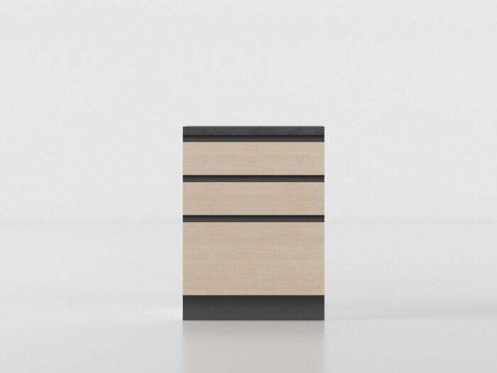 La base cassetti da 60 cm della cucina Cassandra è una scelta perfetta per l’home staging. Realizzata in cartone ecologico da 7 mm, unisce sostenibilità e design. Il frontale, con stampa effetto legno, e il top in antracite creano un look contemporaneo e raffinato, adatto a diversi stili di arredamento. Inoltre, i cassetti presentano una stampa frontale che riproduce dettagli realistici, offrendo una sensazione di qualità e cura nei dettagli.