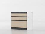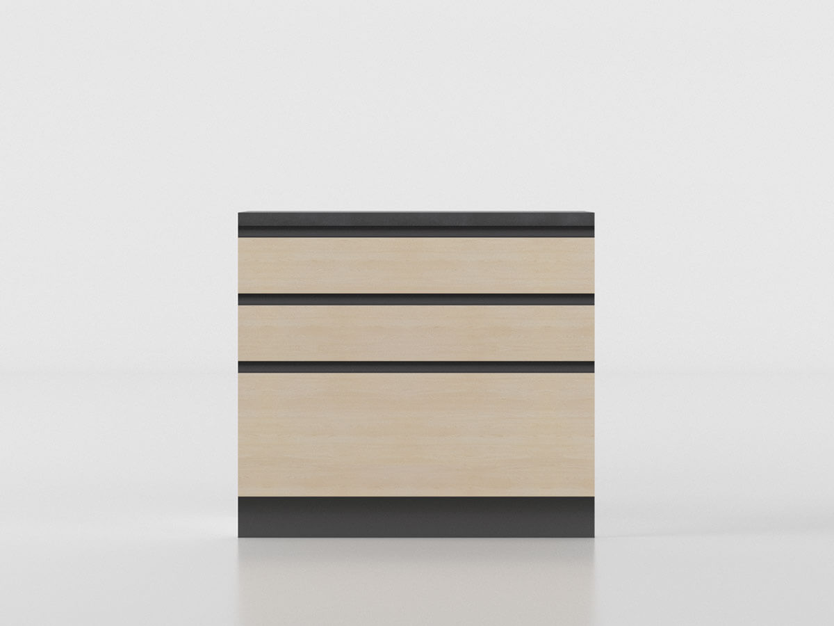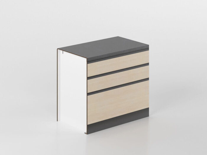La base cassetti da 90 cm della linea Cassandra è un modulo componibile ideale per arricchire gli allestimenti di home staging in cucina. Realizzata in cartone resistente da 7 mm, è leggera, maneggevole e facile da spostare, perfetta per creare diverse configurazioni. La stampa digitale dei cassetti riproduce una finitura in legno chiaro, con un top in antracite, offrendo un contrasto raffinato e un design classico, ma di grande impatto visivo. Grazie al sistema di montaggio a fisarmonica brevettato, la base cassetti si monta in pochi minuti, rendendo l’allestimento rapido ed efficiente. Questo modulo si integra perfettamente con gli altri elementi della linea, consentendo di creare layout personalizzati e adattabili a qualsiasi spazio e stile. Ideale per chi cerca una soluzione pratica, elegante e realistica per migliorare l’efficacia delle proprie strategie di vendita, la base cassetti rappresenta una scelta ecologica e funzionale.