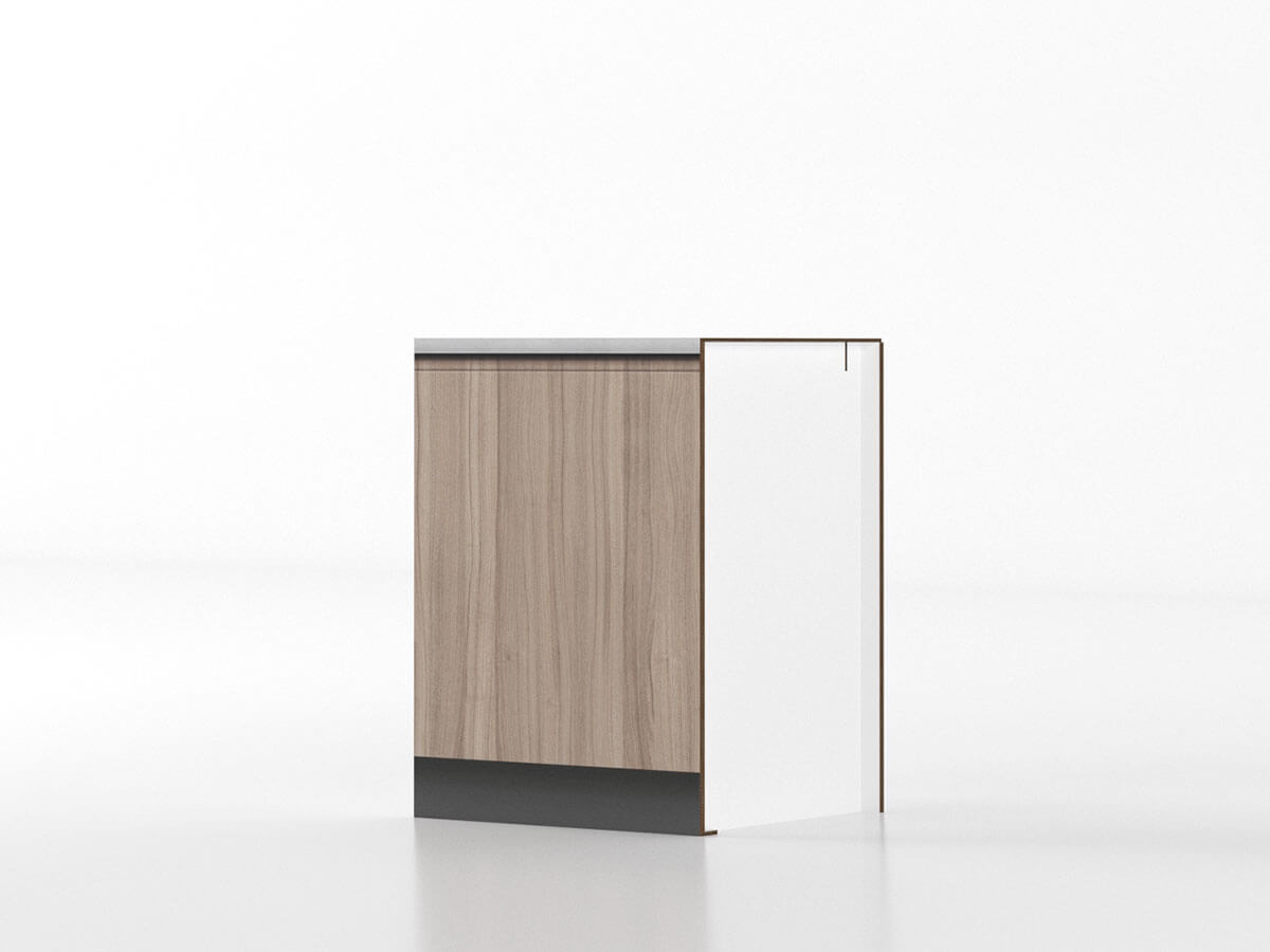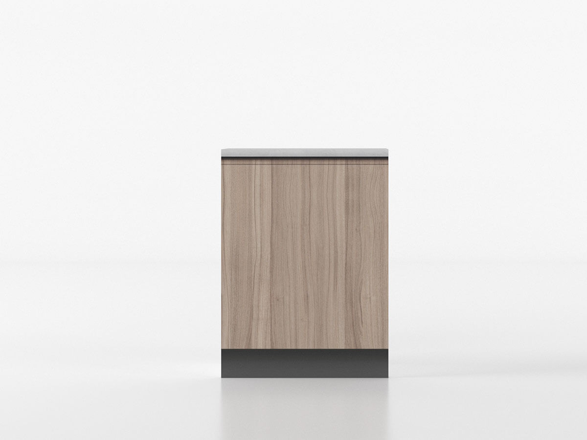 L’effetto scenografico è garantito dalle stampe ad alta definizione che riproducono la finitura del noce scuro sul fronte e il top in gres, donando un aspetto elegante e moderno. La base anta da 60 cm si inserisce perfettamente in qualsiasi composizione grazie alla sua modularità, permettendo di creare layout personalizzati e flessibili. È la soluzione smart per chi desidera un allestimento di qualità, ecologico e visivamente d’impatto, senza complicazioni o costi elevati.