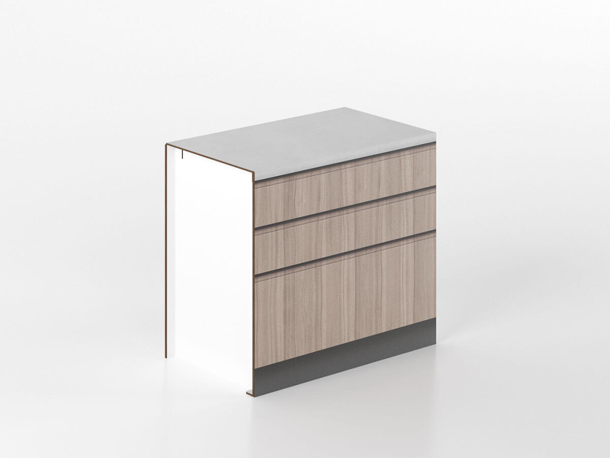 La base da 90 cm con cassetti stampati della linea Cassandra è perfetta per allestimenti veloci e impeccabili. Grazie al sistema di montaggio pop-up, puoi creare in pochi minuti una cucina funzionale, risparmiando tempo prezioso senza rinunciare all’estetica. Questo modulo versatile si adatta facilmente agli spazi, consentendo di personalizzare l’allestimento in base alle esigenze. Realizzato in cartone da 7 mm, è leggero e resistente, con una stampa in alta definizione che riproduce l’eleganza del legno di noce sul fronte e l’effetto gres sul top. I cassetti stampati donano un look moderno e realistico, perfettamente in linea con le tendenze contemporanee. Ideale per professionisti dell’home staging, la base con cassetti è una soluzione pratica e di stile per valorizzare gli immobili in vendita.