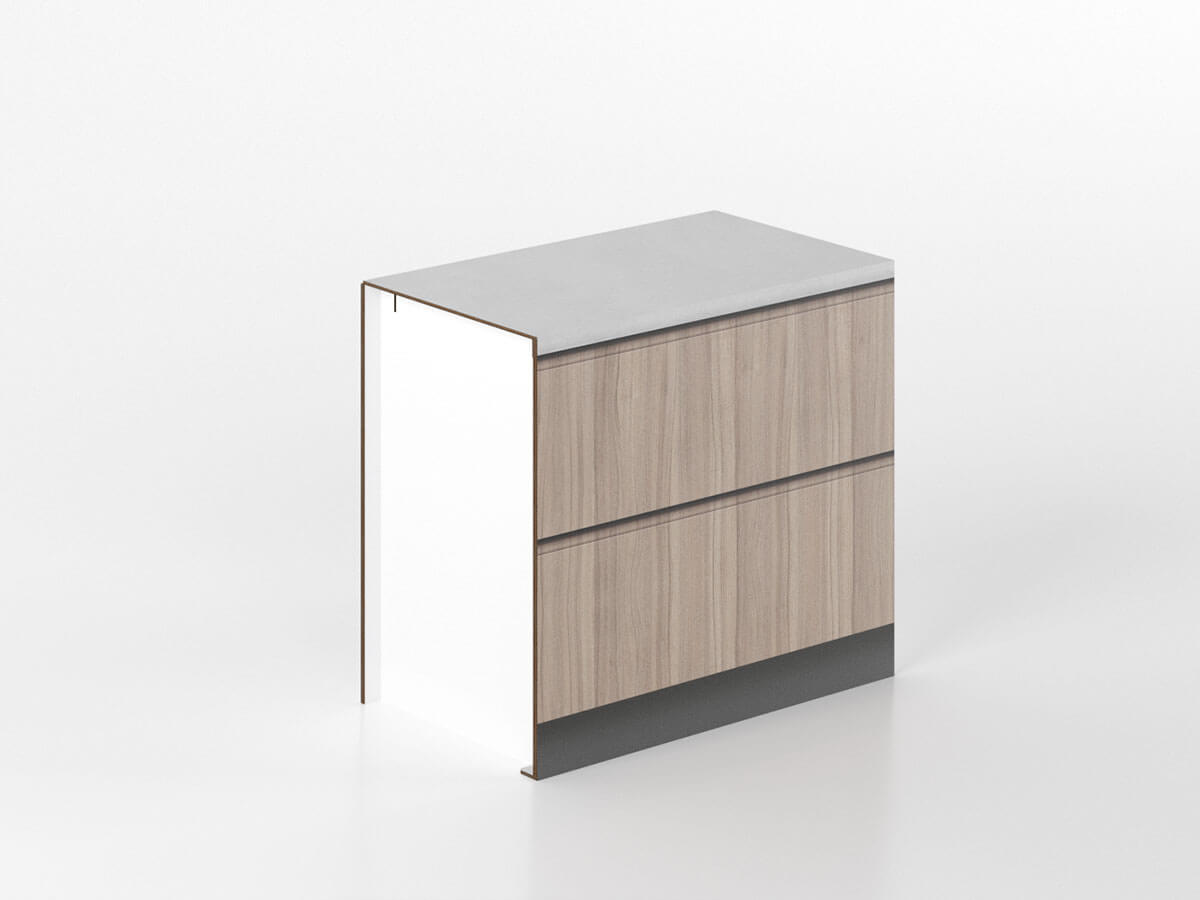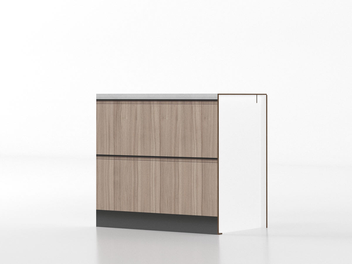 La base cassettoni da 90 cm della nuova linea pop-up di cucine dimostrative è progettata per offrire soluzioni funzionali e rapide nell’ambito dell’home staging. Parte di un kit modulare, questo elemento è realizzato in cartone leggero e maneggevole, ideale per essere trasportato e montato in tempi record. Il sistema di montaggio rapido e brevettato facilita l’installazione, rendendo questa base cassettoni una scelta perfetta per chi cerca efficienza senza rinunciare al design. Le stampe digitali di alta qualità replicano con estrema fedeltà le finiture del legno di noce scuro sul fronte e del gres sul top, donando un aspetto realistico e contemporaneo all’allestimento. Grazie alla sua modularità, la base si adatta perfettamente agli spazi disponibili, permettendo di creare cucine dimostrative che colpiscono per stile e praticità. Una soluzione intelligente e di grande impatto visivo per chi desidera ambienti moderni e funzionali.