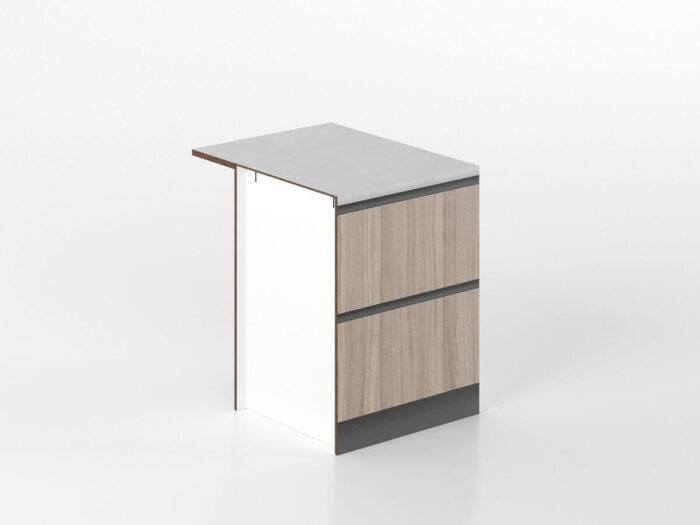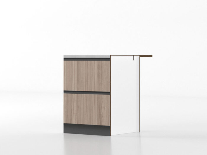 La base piano snack da 60 cm della linea di cucine per home staging Cassandra è una soluzione versatile e funzionale, perfetta per creare layout originali. Progettata con un piano leggermente più lungo, forma una piccola penisola che offre spazio aggiuntivo per interazioni conviviali. Realizzata in cartone ecologico da 7 mm, questa base è resistente e leggera, facilitando il trasporto e lo spostamento.