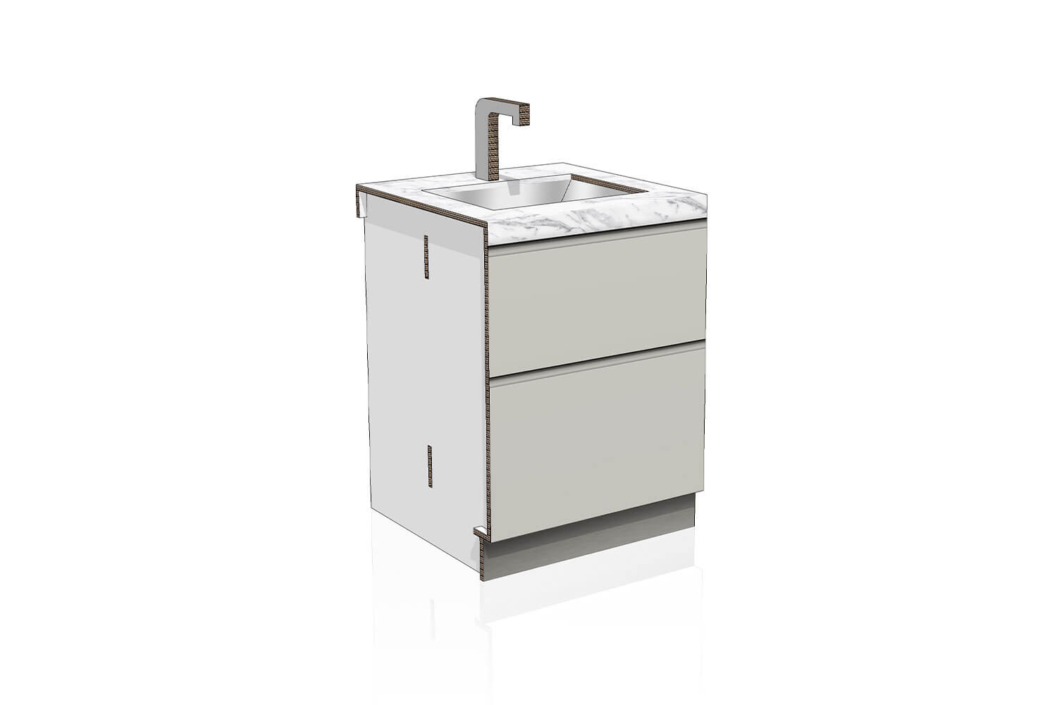 La base lavandino da 60 della cucina Clarea è una soluzione modulare versatile che si adatta a qualsiasi spazio. Caratterizzata da un piano stampato in marmo e frontali a cassettoni, offre un design elegante e pratico. Completa di rubinetto, è facile da montare e richiede poco spazio per riporla. Realizzata in cartone ecologico, è leggera ma resistente, consentendo un’installazione rapida e un trasporto agevole. La sua natura rimontabile la rende ideale per essere utilizzata in diversi ambienti e per differenti allestimenti. La base lavandino Clarea rappresenta una soluzione innovativa e sostenibile per la cucina, combinando funzionalità e stile contemporaneo, adattandosi con facilità a varie esigenze abitative.