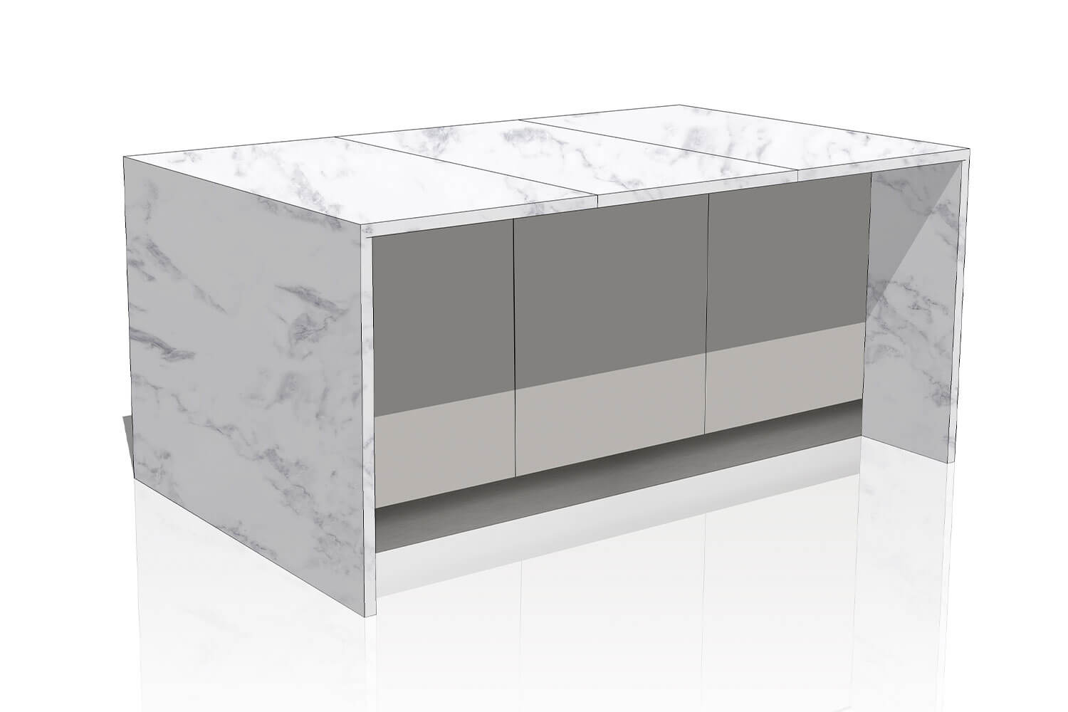 Il modulo isola in cartone della cucina per home staging modello Clarea è una soluzione elegante e funzionale per arredare grandi ambienti. Con una stampa di finitura del piano effetto marmo e un frontale di colore grigio, offre un aspetto sofisticato e decorativo che si adatta perfettamente a uno stile moderno. Realizzato in cartone ecosostenibile, il modulo Clarea è leggero e facile da gestire, rendendolo ideale per le esigenze del home staging. La sua struttura non solo contribuisce a un design elegante, ma offre anche una funzionalità pratica, permettendo di ottimizzare lo spazio con uno stile raffinato. Adatto per spazi ampi, questo modulo isola arricchisce l’ambiente, combinando sostenibilità e design contemporaneo per attrarre potenziali compratori e valorizzare l’area cucina.