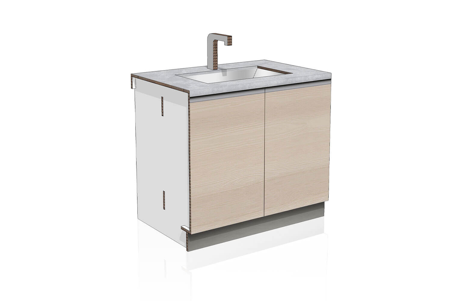 La base lavandino da 90 della linea Miage è pensata per chi desidera allestire cucine dimostrative con gusto e praticità. Questa soluzione, versatile ed ecologica, offre un tocco decorativo con la sua stampa con finitura in legno e piano in pietra, conferendo un aspetto naturale e accattivante alla cucina espositiva. Facile da montare e riutilizzabile in altri allestimenti, questa base lavandino si adatta facilmente allo spazio disponibile, permettendo una configurazione flessibile e personalizzata. Grazie alla sua versatilità e alla sua costruzione robusta, è ideale per presentazioni immobiliari. Aggiungendo funzionalità e stile alla tua cucina espositiva, la base lavandino Miage offre una soluzione completa per valorizzare gli spazi abitativi in modo convincente e professionale.
