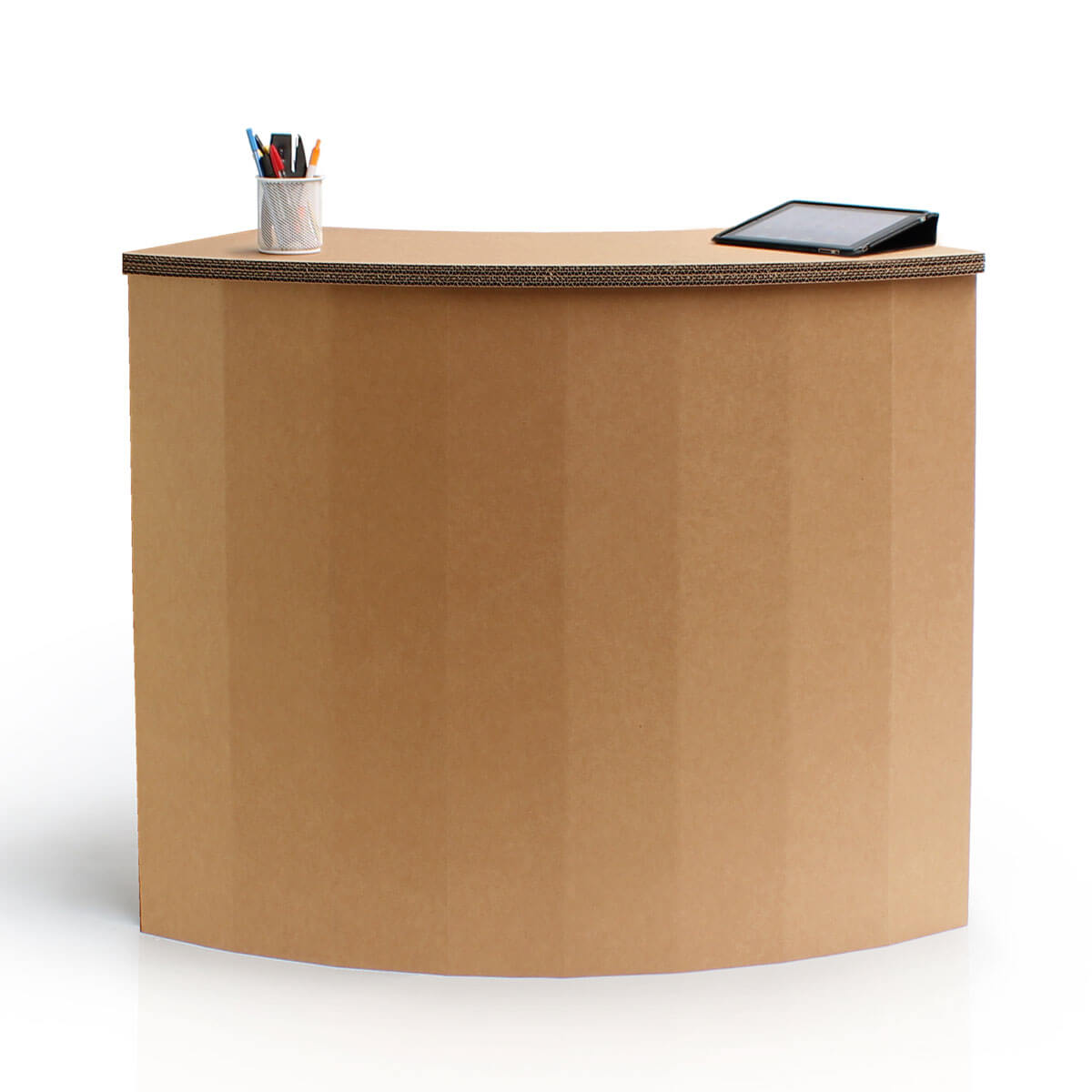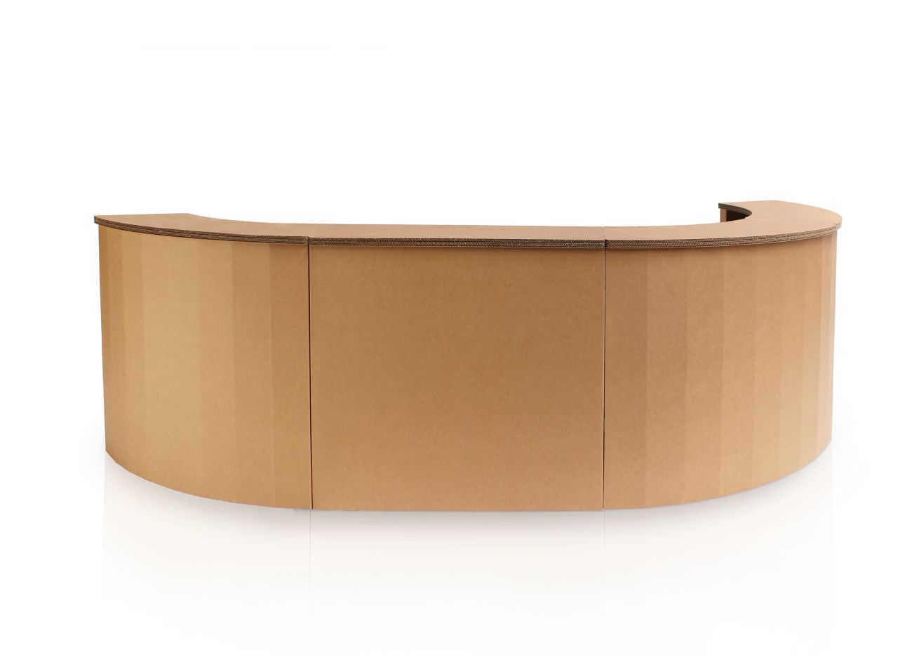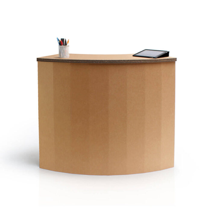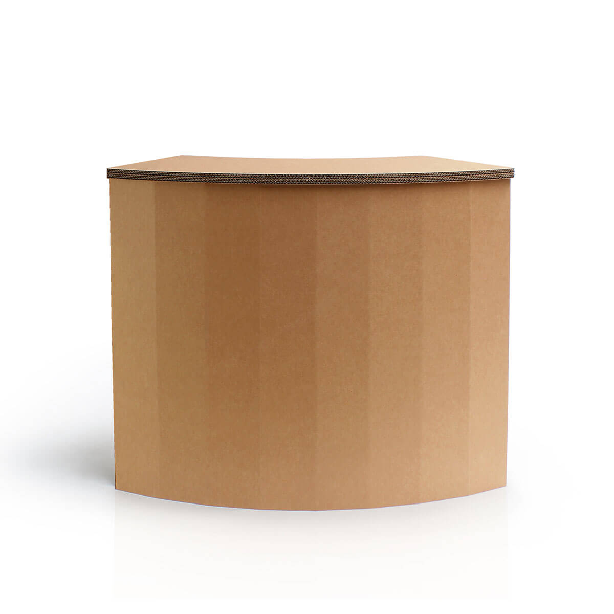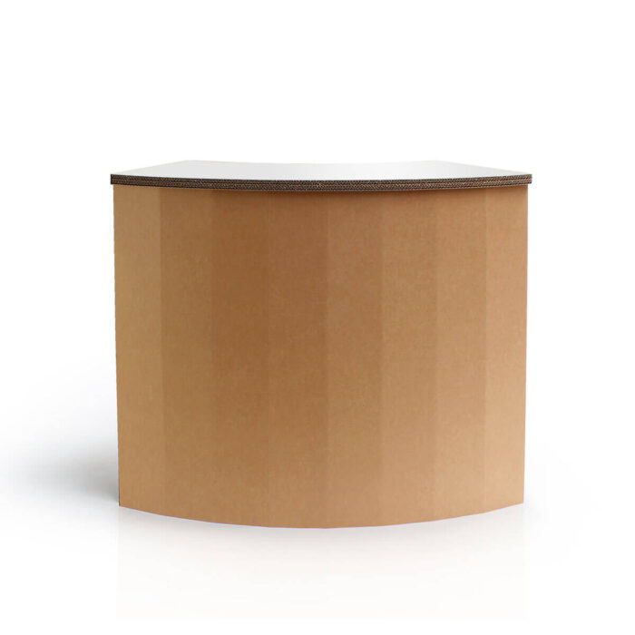 Il desk curvo in cartone ecologico Losa E è una soluzione di design unica per coloro che cercano armonia visiva e personalizzazione. Losa E è un modulo flessibile che può essere utilizzato come singolo elemento o combinato per creare allestimenti più ampi di grande impatto visivo sia per la sua forma che per la possibilità di personalizzare il frontale con stampe.
