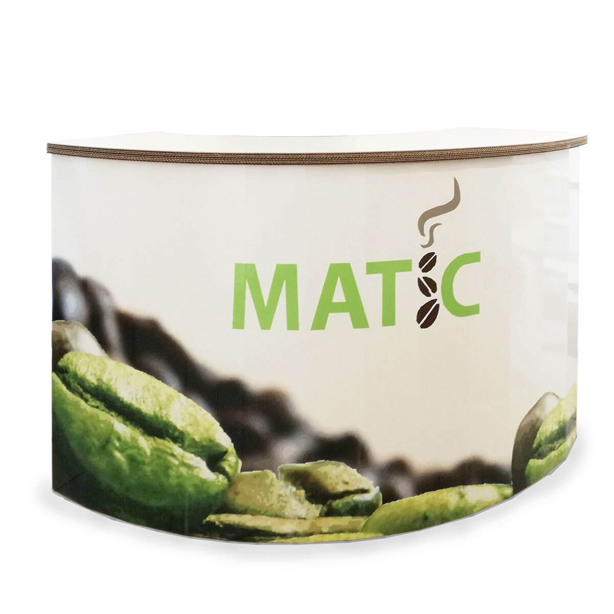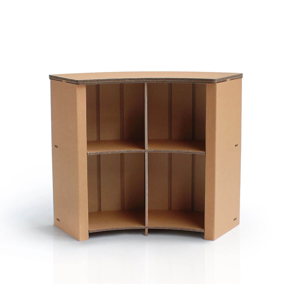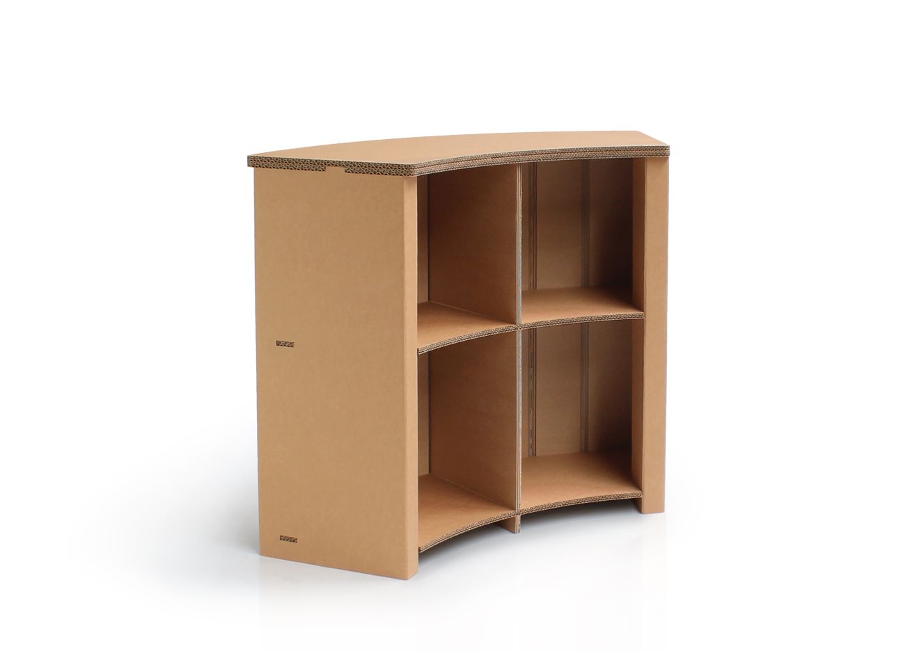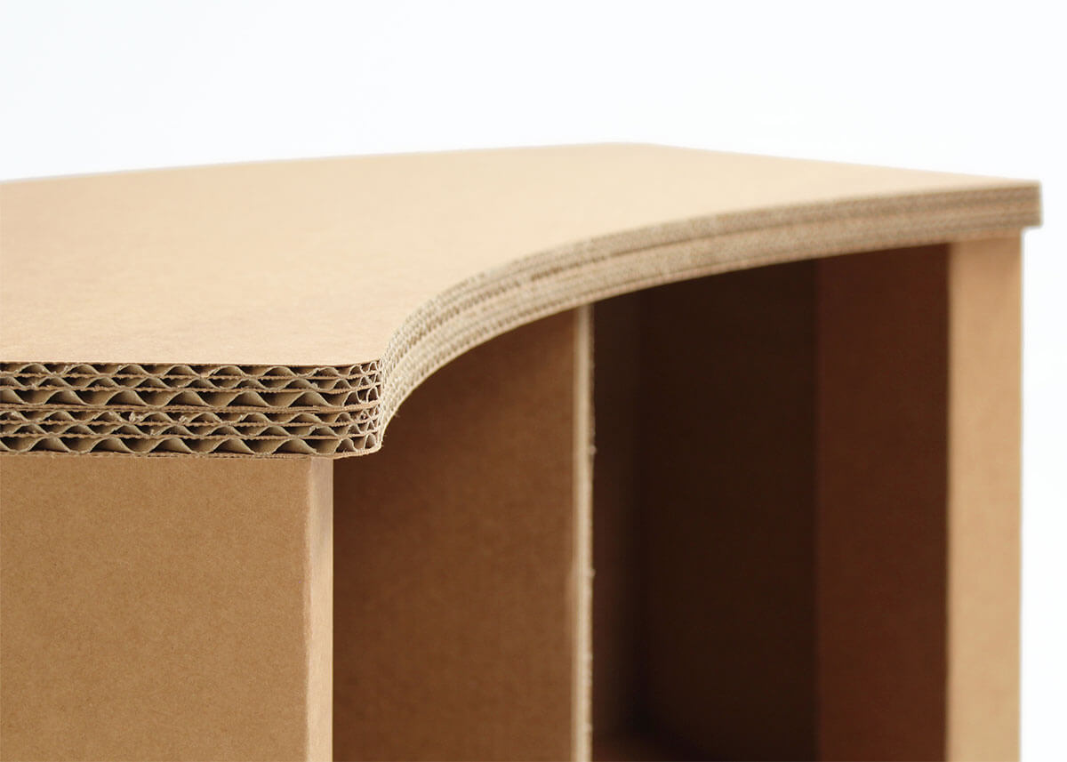 Il desk curvo in cartone ecologico Losa E è una soluzione di design unica per coloro che cercano armonia visiva e personalizzazione. Losa E è un modulo flessibile che può essere utilizzato come singolo elemento o combinato per creare allestimenti più ampi di grande impatto visivo sia per la sua forma che per la possibilità di personalizzare il frontale con stampe.