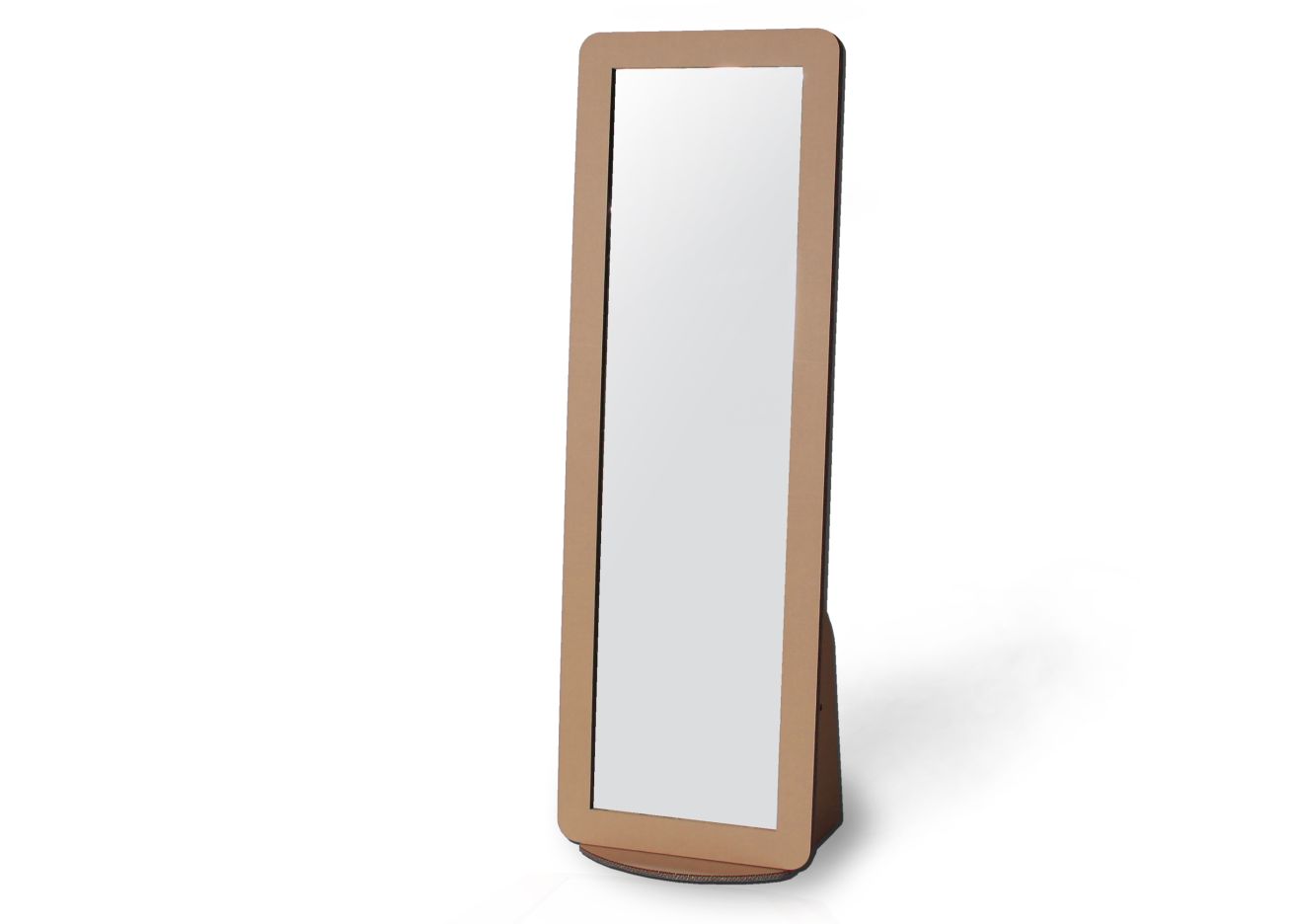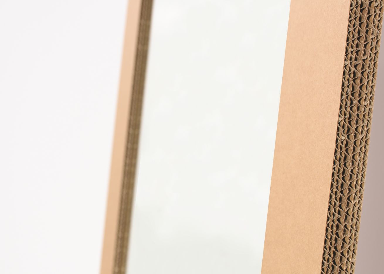 Ciò che colpisce subito è il materiale di base: realizzata con cartone alveolare naturale, la specchiera Andolla è un’opzione rispettosa dell’ambiente. La sua semplicità e linearità nel design la rendono versatile e adatta a qualsiasi tipo di ambiente. La forma con piedistallo la rende autonoma, permettendo di personalizzare angoli o nicchie all’interno di spazi residenziali o commerciali.