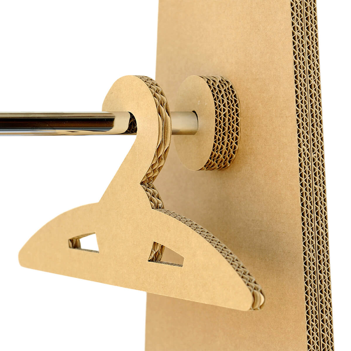Paramont è un appendiabiti ecologico. È una soluzione versatile e sostenibile che si adatta a diversi contesti  ed è ideale per gli eventi poiché è facilmente spostabile tramite le ruote inserite alla base. La struttura triangolare che poggia su una unica base rende questo complemento solido e sicuro. Con l’appendiabiti Paramont i vostri abiti sono protetti e ben alloggiati grazie ad apposite grucce realizzate anch’esse in cartone ed appese ad un tubo metallico. L’appendiabiti è personalizzabile attraverso la tabella superiore stampabile sia sul fronte che sul retro, con grafiche e colori da voi fornite.
