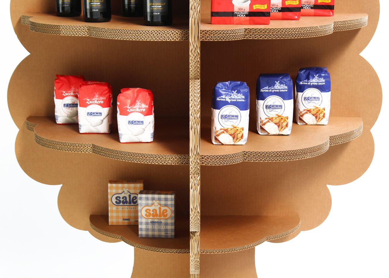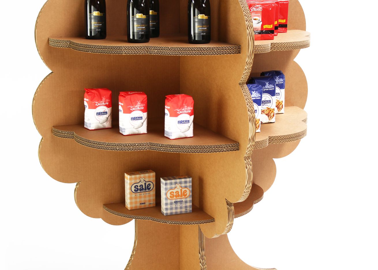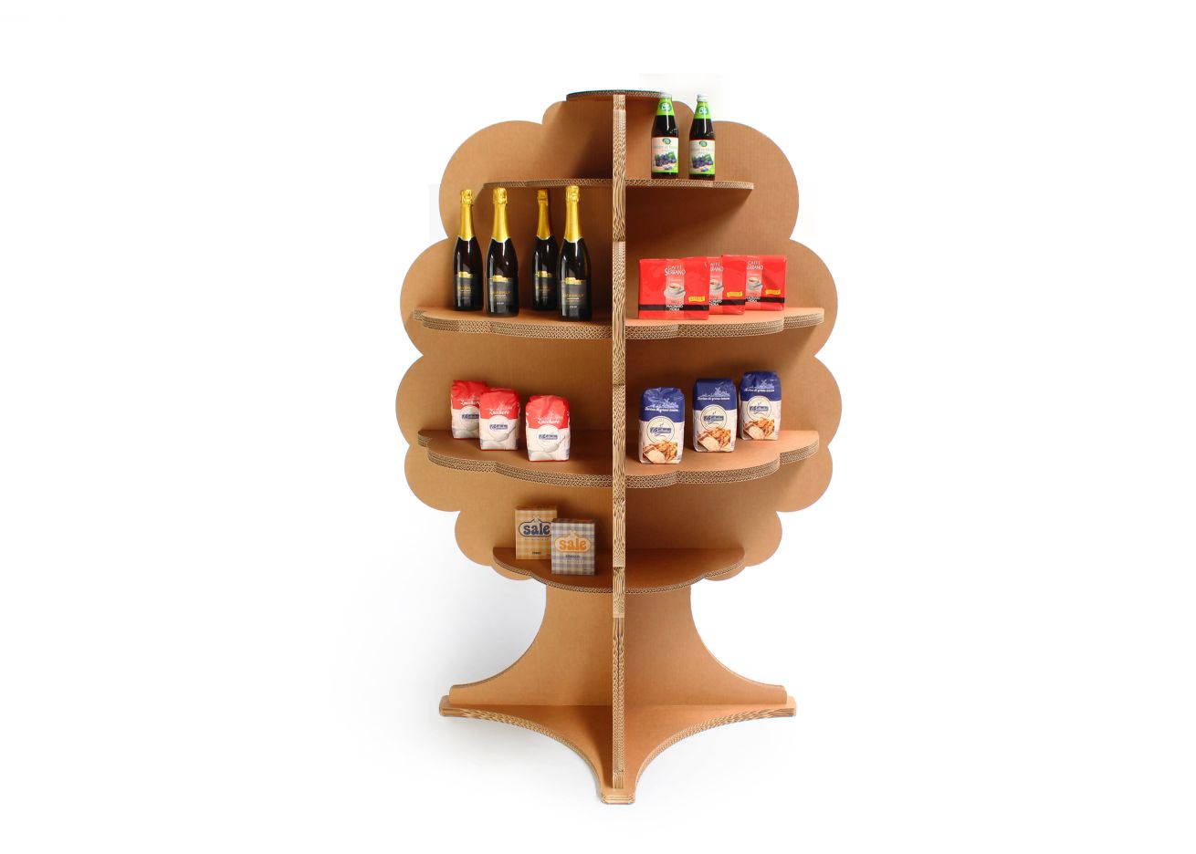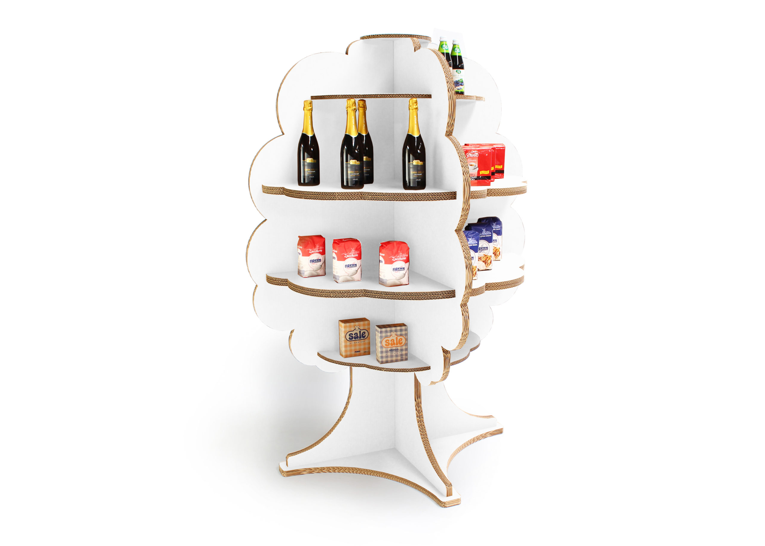 Costone è un espositore da terra di eco-design in cartone che arreda l’ambiente con un tocco naturale ed ecologico. L’espositore è stato progettato con una forma ad albero in cui trovano spazio ripiani con dimensioni variabili che si snodano dal basso verso l’alto della struttura. Costone è disponibile nella finitura naturale avana o bianca del cartone è caratterizzabile con stampe personalizzate ad alta definizione ed incarnare la nostra filosofia green. Questa soluzione consente di esporre la merce in maniera organica ed originale per una costumare experience che lascia il segno.