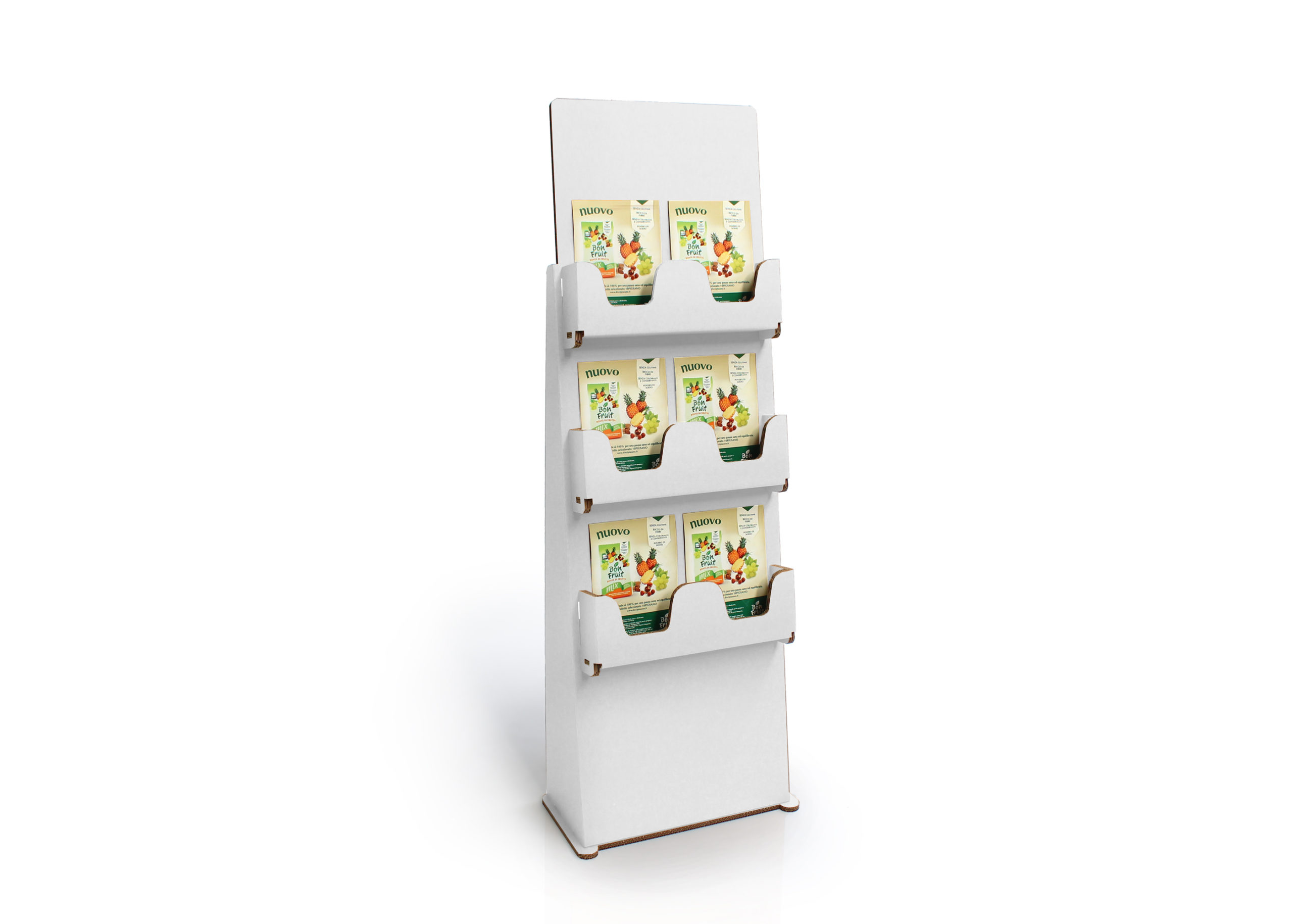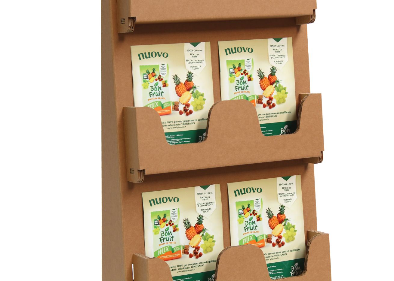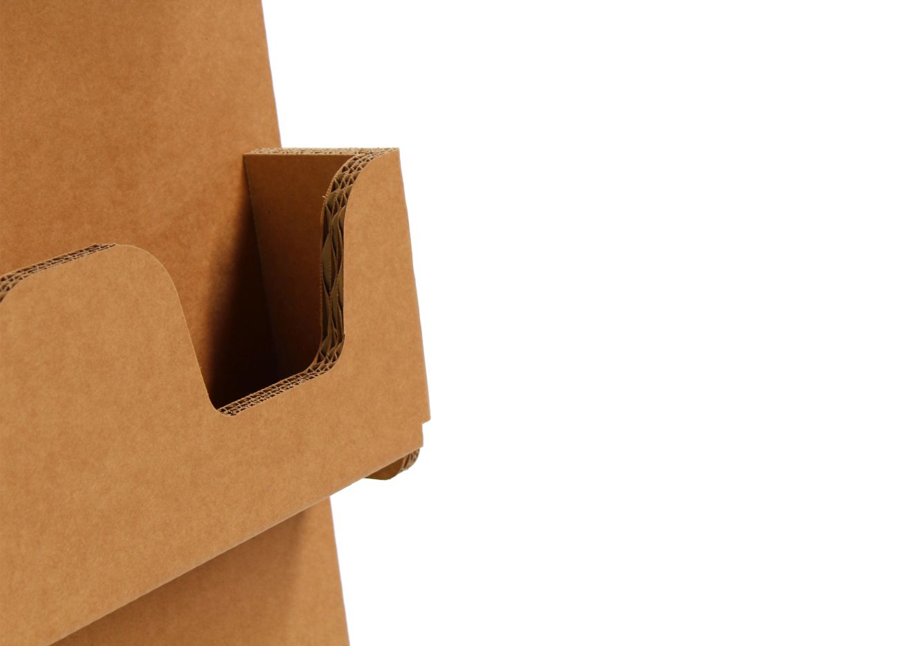 Pioda è un espositore porta depliant e materiale informativo realizzato in cartone, progettato con numerose vani per un’esposizione completa e ordinata. Questa soluzione autoportante è solida e di lunga durata, consentendo la personalizzazione delle dimensioni e del numero di tasche in base alle esigenze di esposizione. È ideale per coloro che desiderano comunicare in modo ecologico, offrendo un supporto pratico e visivamente accattivante per la distribuzione di brochure e depliant. Pioda si distingue per la sua versatilità e resistenza, adattandosi a varie tipologie di materiale promozionale. Grazie al suo design eco-friendly, rappresenta una scelta consapevole per chi valorizza la sostenibilità nell’ambito della comunicazione e dell’esposizione. Dimensioni prodotto: 58 x 33 h. 168 cm.