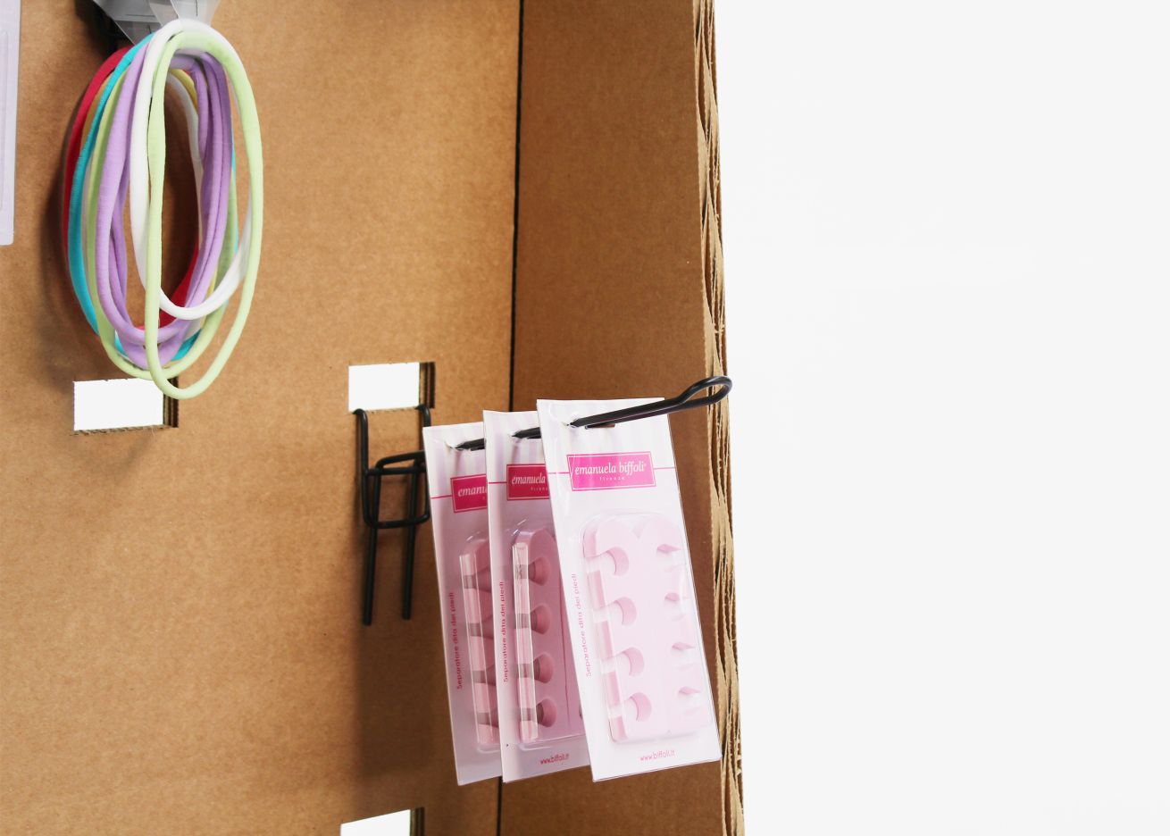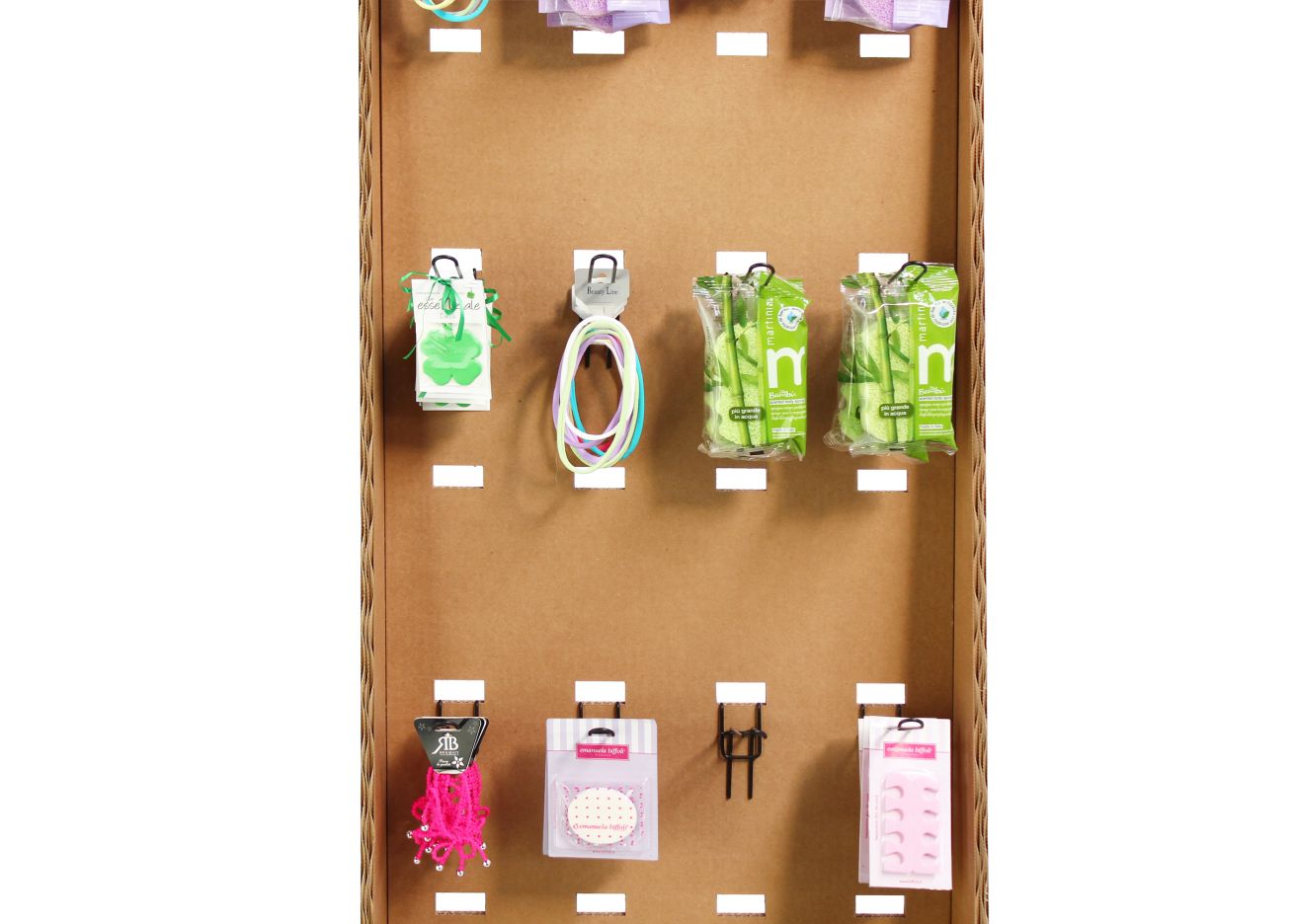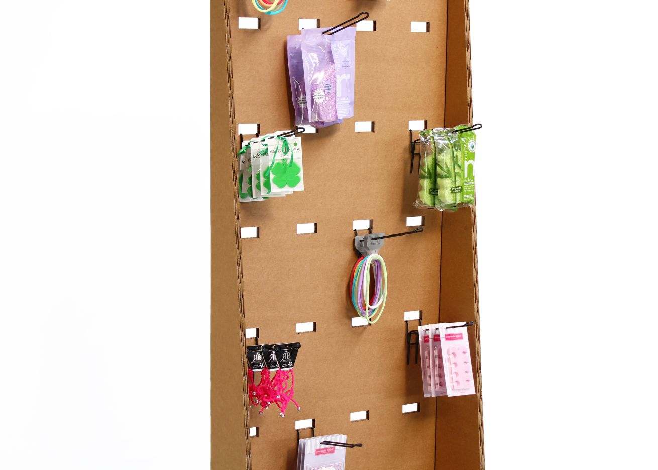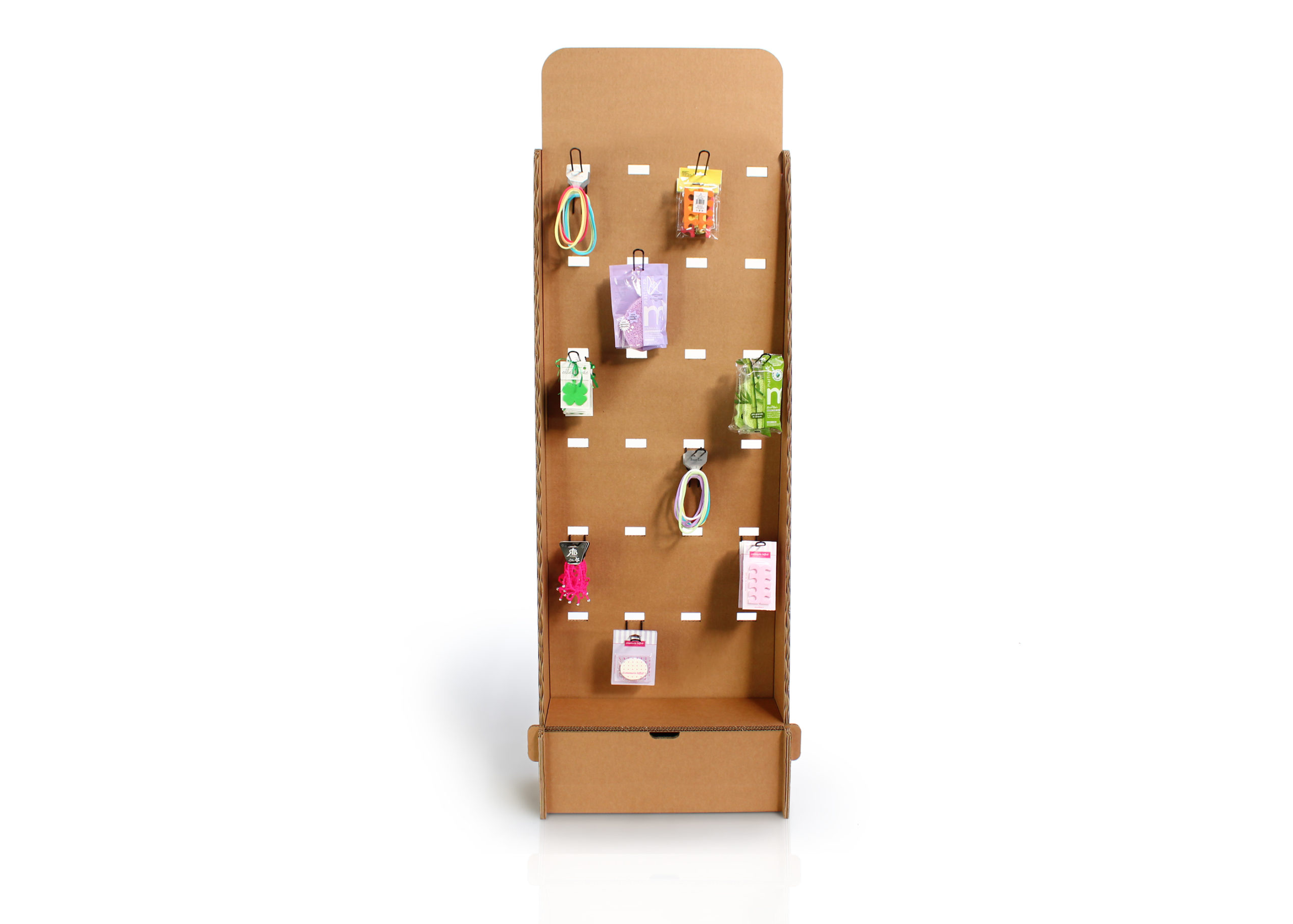 Plem è un espositore portablister  in cartone ecologico autoportante progettato e realizzato per l’esposizione di prodotti con sistema blister. La struttura solida e lineare permette una mostra chiara ed ordinata della merce in verticale. Plem è realizzato interamente in cartone riciclabile, prevede una cassetto chiuso in cui riporre la merce ed è personalizzabile con stampe digitali ad alta definizione sia sul fronte che sul retro. I ganci sono previsti di lunghezza variabile a seconda delle esigenze del cliente. Ogni elemento comprende  un numero pari a 8 portablister.