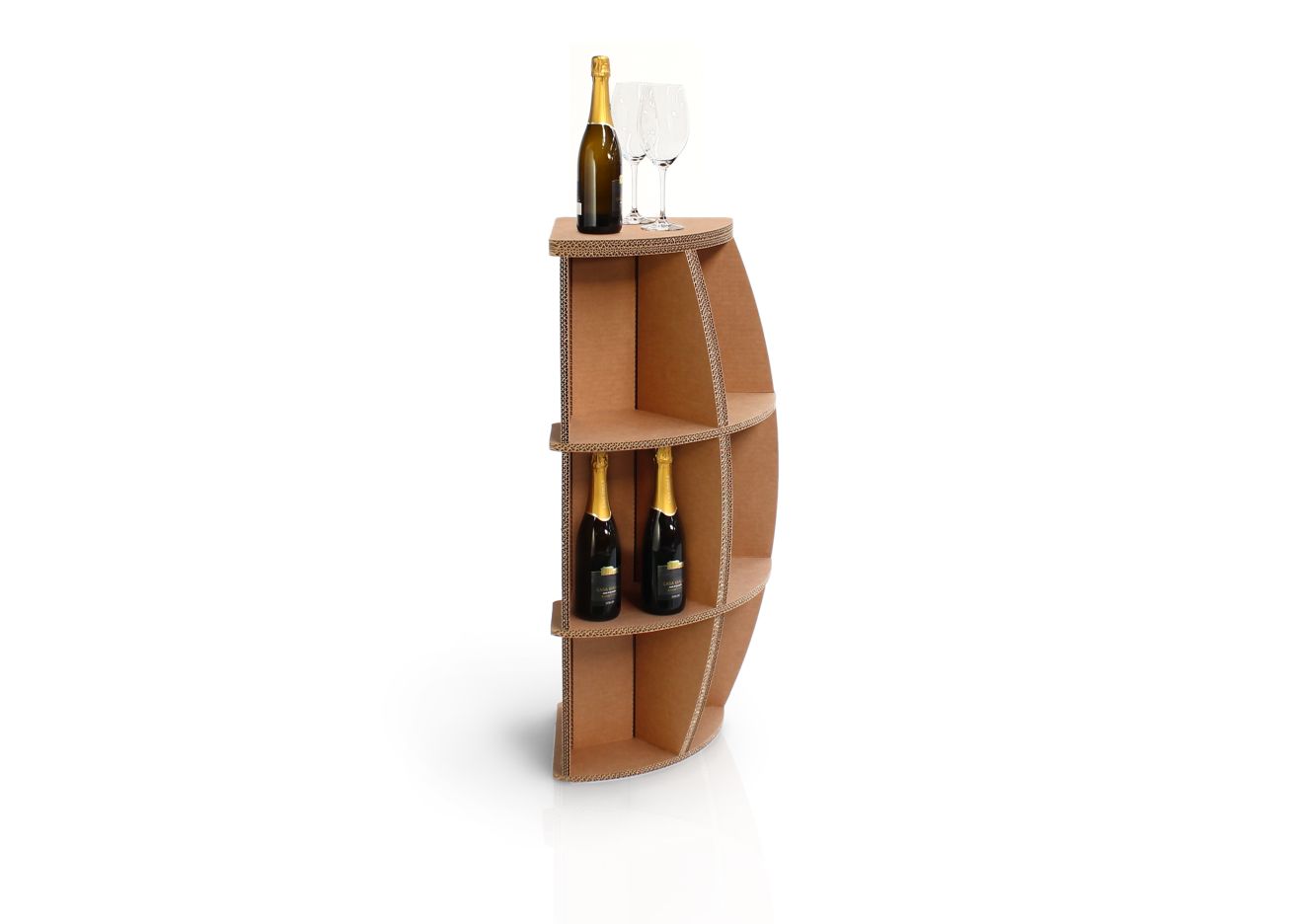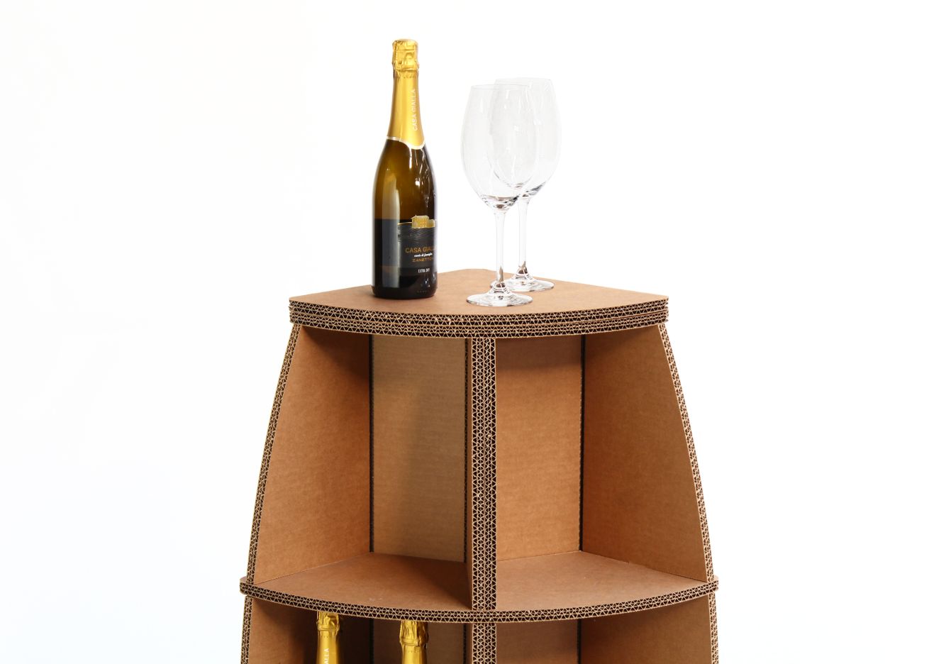 Il portabottiglie angolare in cartone Rebbio 90 è un esempio di design funzionale, che unisce l’eleganza alla praticità sfruttando in modo intelligente gli angoli degli ambienti. Dotato di numerosi vani, questo elemento non solo organizza le bottiglie o gli aggetti in modo impeccabile ma aggiunge anche uno stile distintivo a qualsiasi spazio.