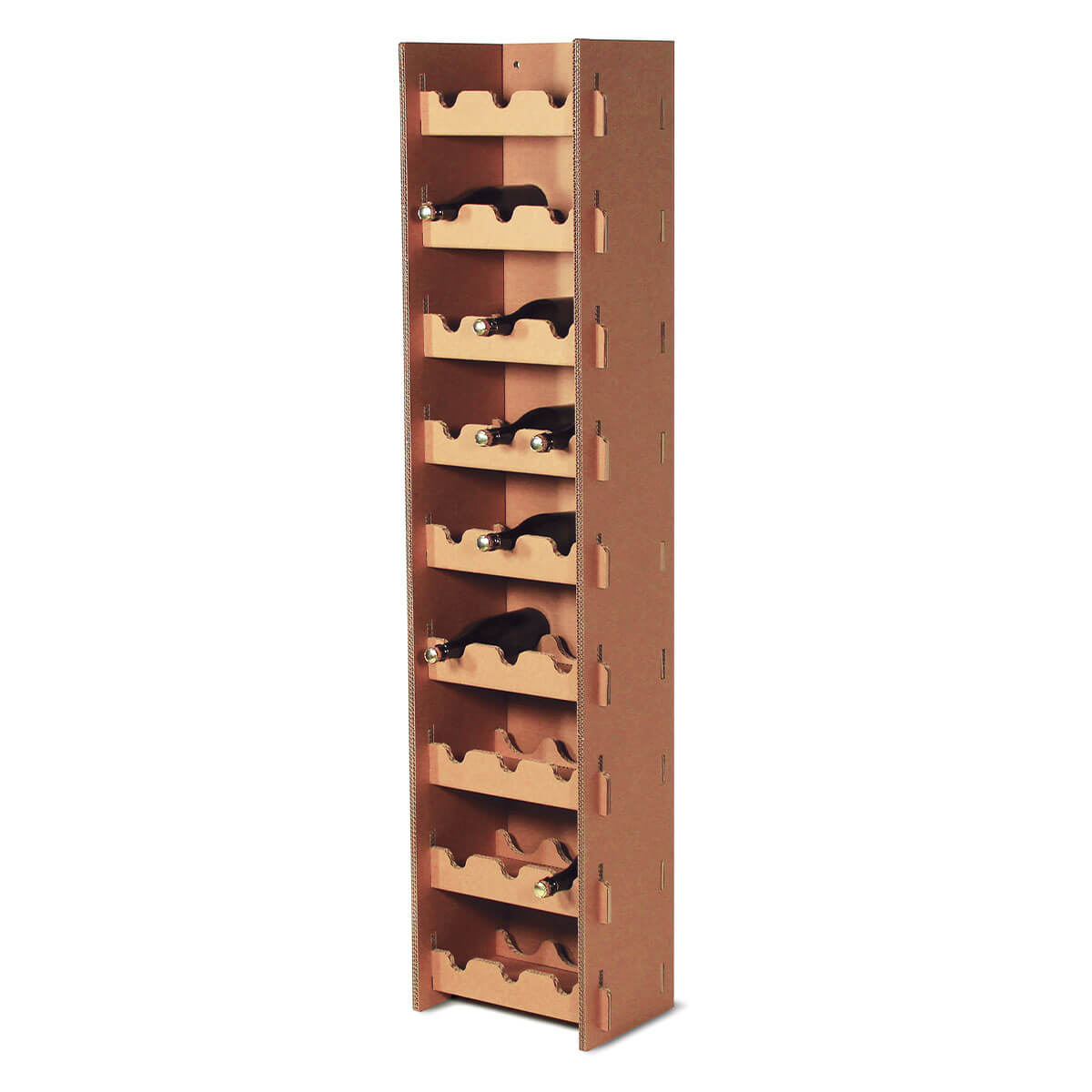 Il portabottiglie compatto a mobiletto Solda rappresenta una soluzione solida e strutturata per l’esposizione di bottiglie in modo elegante e funzionale. Realizzato con pannelli di cartone accoppiati, che formano i lati e la schiena, mentre i ripiani sono sapientemente incastrati tra di essi e sagomati, assicurando un supporto robusto e protezione dagli inconvenienti come le cadute accidentali.