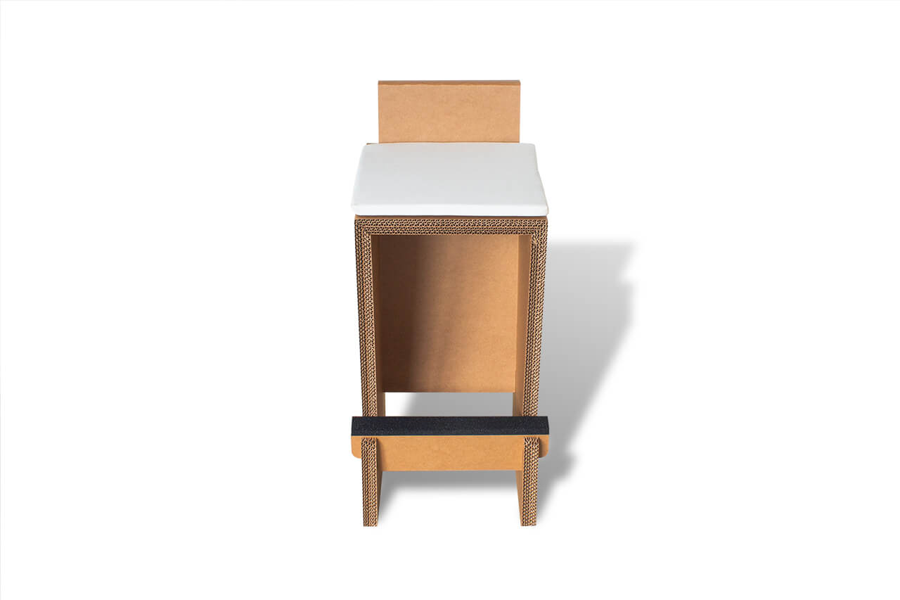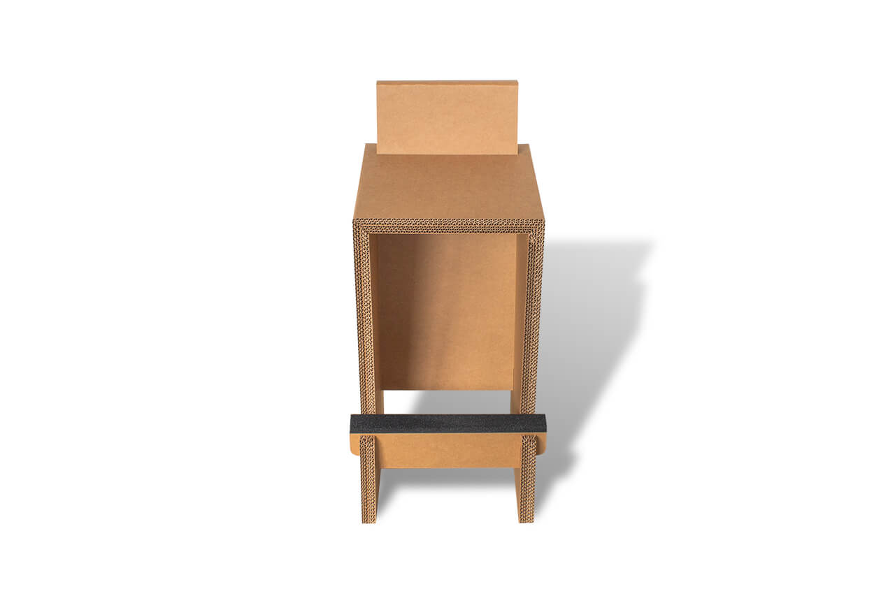 Il nuovo sgabello alto Soi F Plus in cartone rappresenta l’ultima innovazione della gamma Soi, progettato per offrire un perfetto equilibrio tra comfort e funzionalità in qualsiasi contesto. Dotato di un ergonomico poggia schiena, garantisce una seduta confortevole mantenendo un design elegante e leggero. Le linee inclinate aggiungono un tocco contemporaneo e raffinato, mentre il doppio strato di cartone assicura robustezza e resistenza all’usura. Lo sgabello alto offre anche un poggia piedi per amplificare il benessere della seduta.